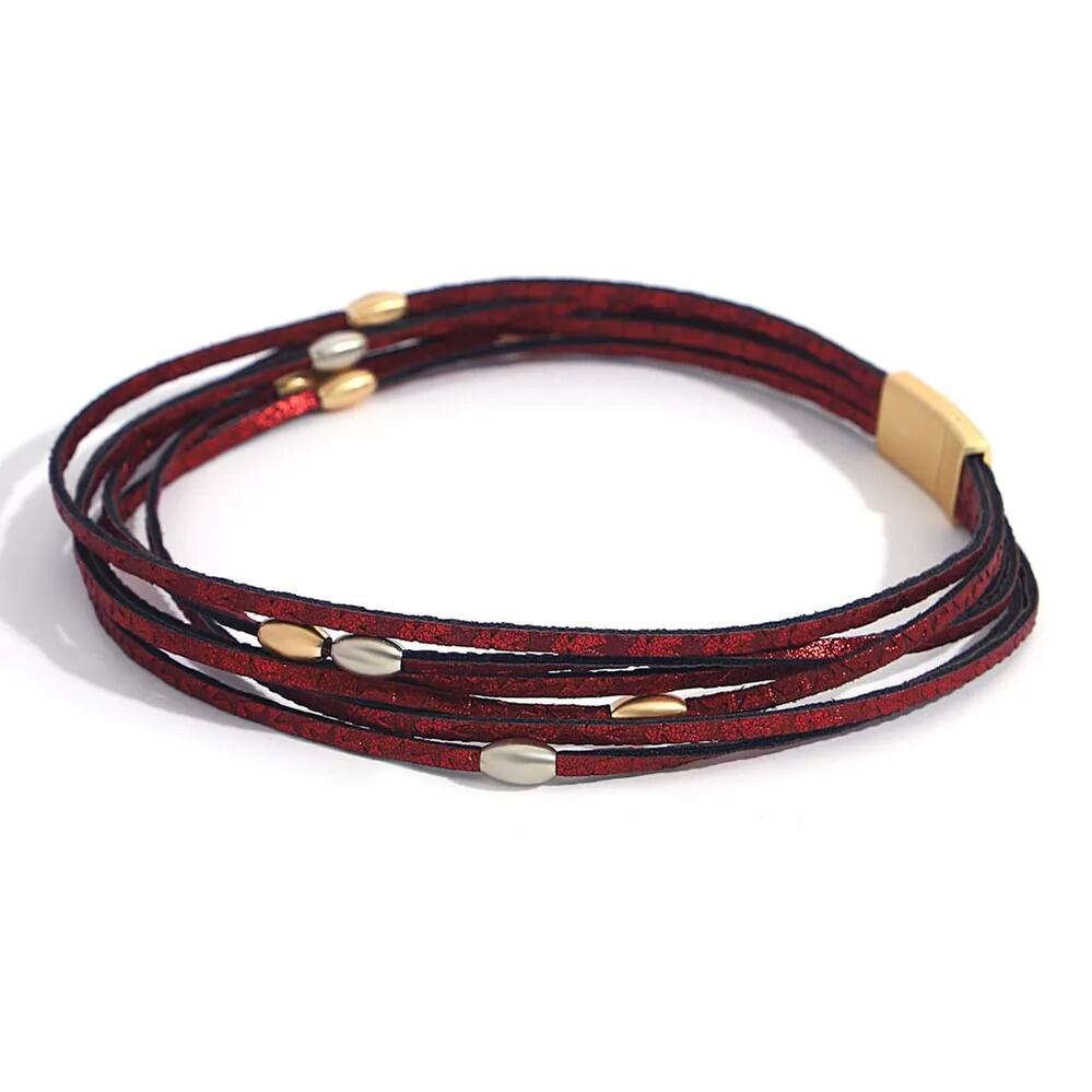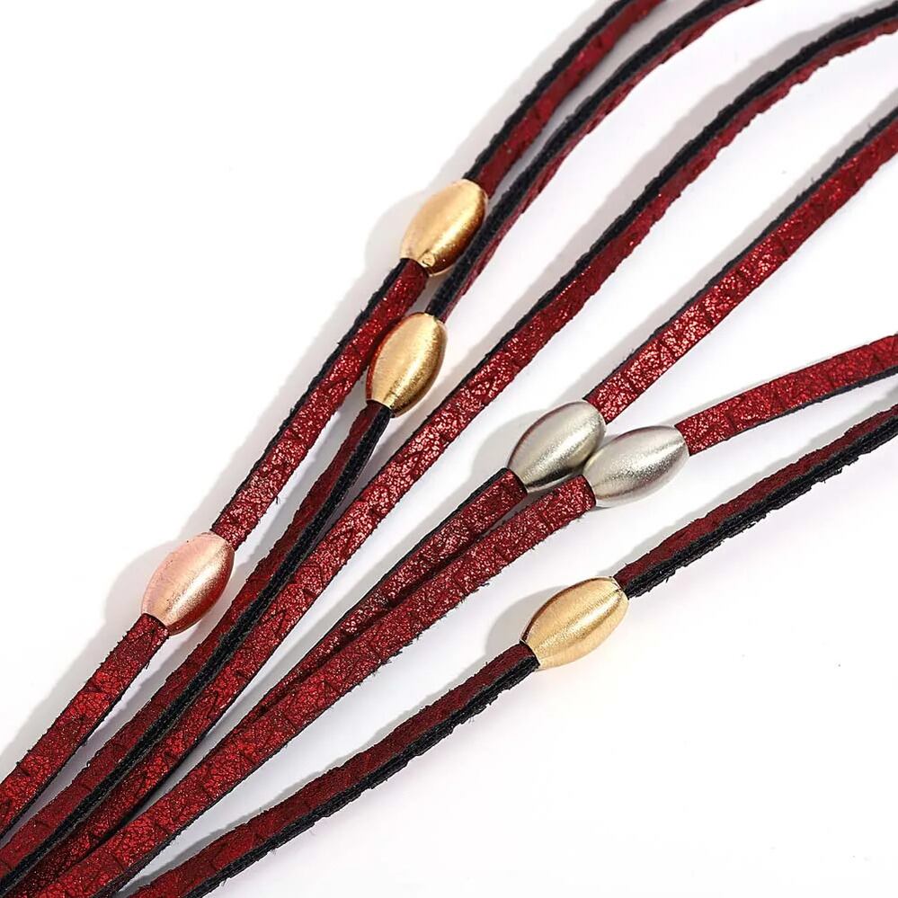 チャーム ブレスレット レザー ビーズ メタル レトロ ロング レディース トリプル カラー BOHO