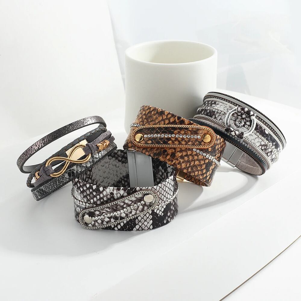 BOHO 蛇 スネイク ヘビ 動物 アニマル スキン 肌 レザー ブレスレット レディース パターン 幅 ラップ 野生 ワイルド ヒョウ レオパード 豹 パンク ジュエリー ギフト