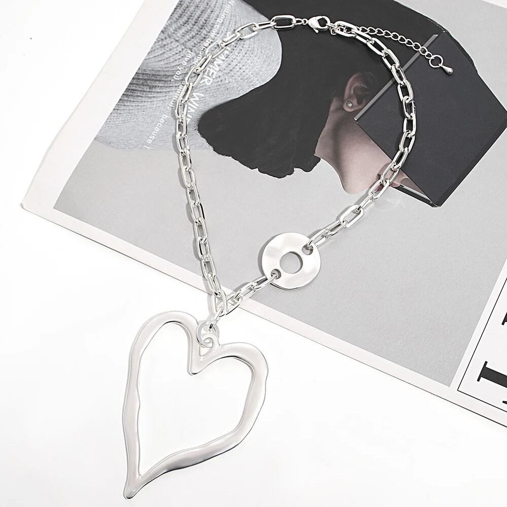 イレギュラー 透かし 大 ハート ペンダント ネックレス レディース ファッション シルバー カラー チェーン バレンタイン 日 ギフト