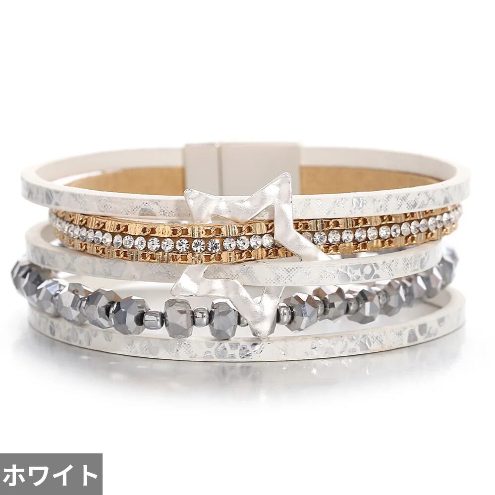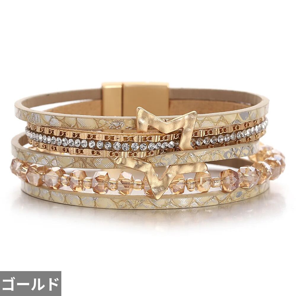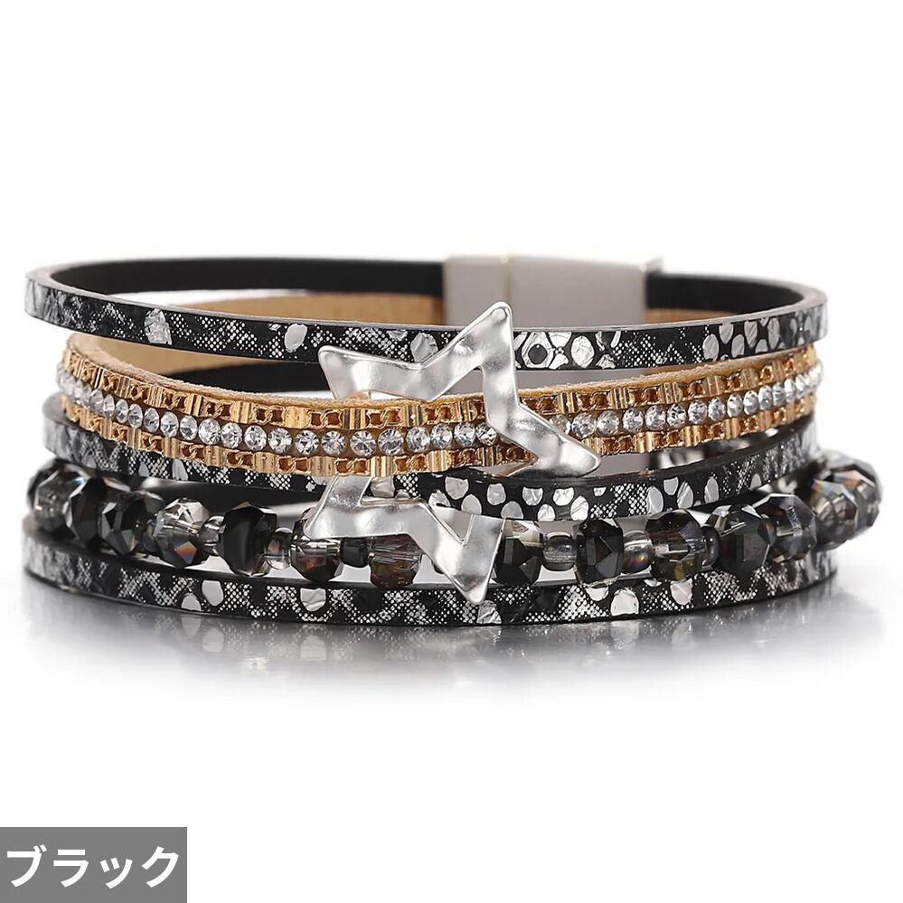 ファッション 透かし スター 星 蛇 スネイク ヘビ 動物 アニマル スキン 肌 レザー ブレスレット レディース チャーム クリスタル ビーズ チェーン 多層 マルチレイヤー ラップ ジュエリー ギフト