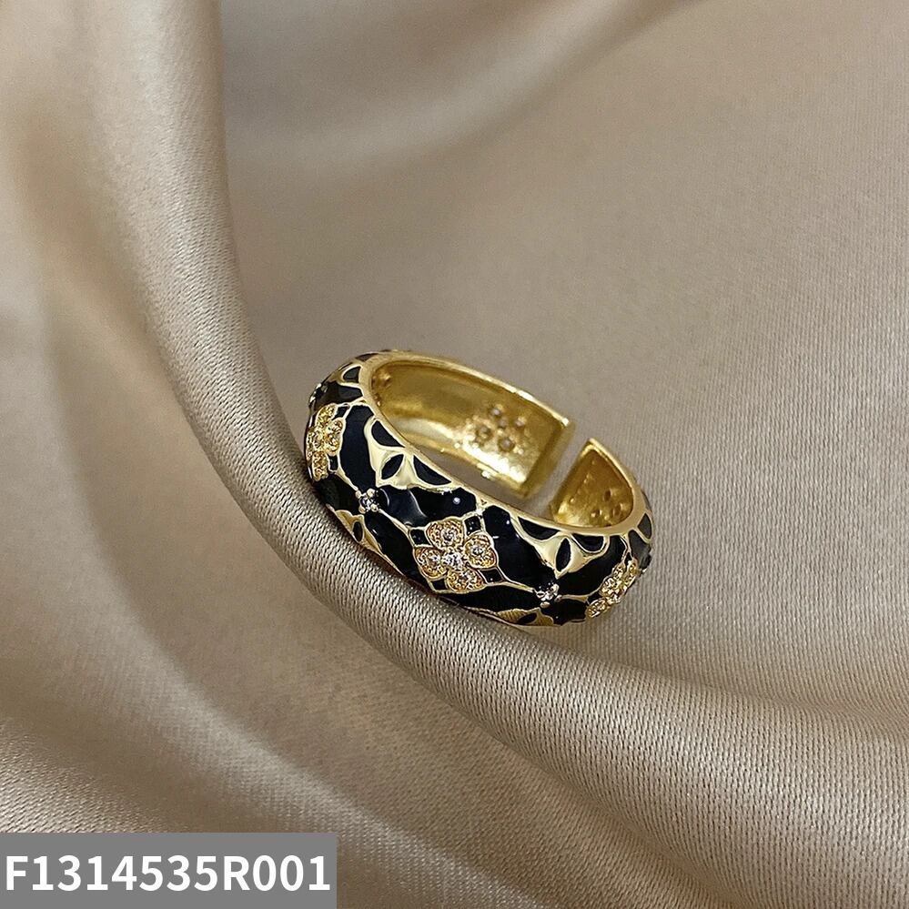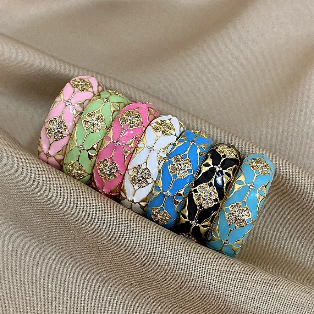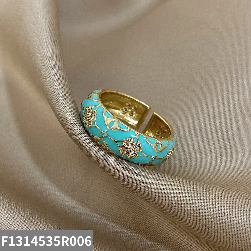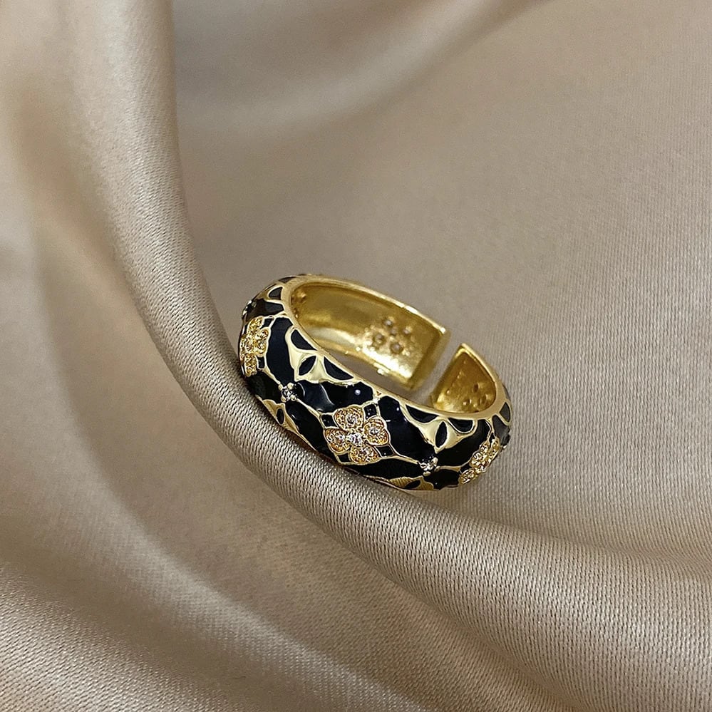 ビンテージ カラフル エナメル 象眼細工 ラインストーン オープニング リング 指輪 レディース 分厚い ゴールド カラー 指 フィンガー ジュエリー ギフト