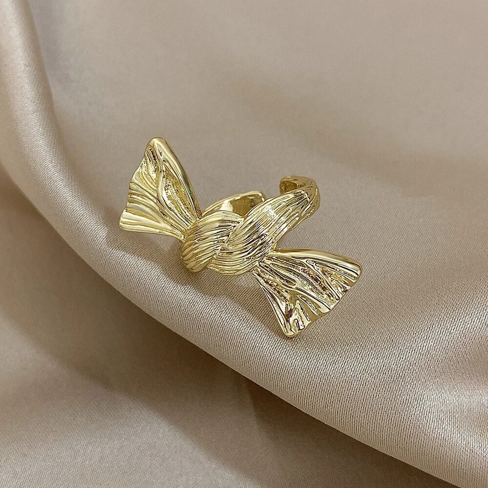 スイート お菓子 スイーツ かわいい キャンディー ボウノット リボン リング 指輪 レディース ガール トレンド イレギュラー テクスチャー ゴールド シルバー カラー 分厚い ジュエリー ギフト