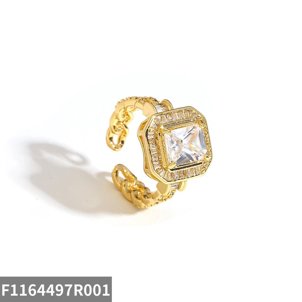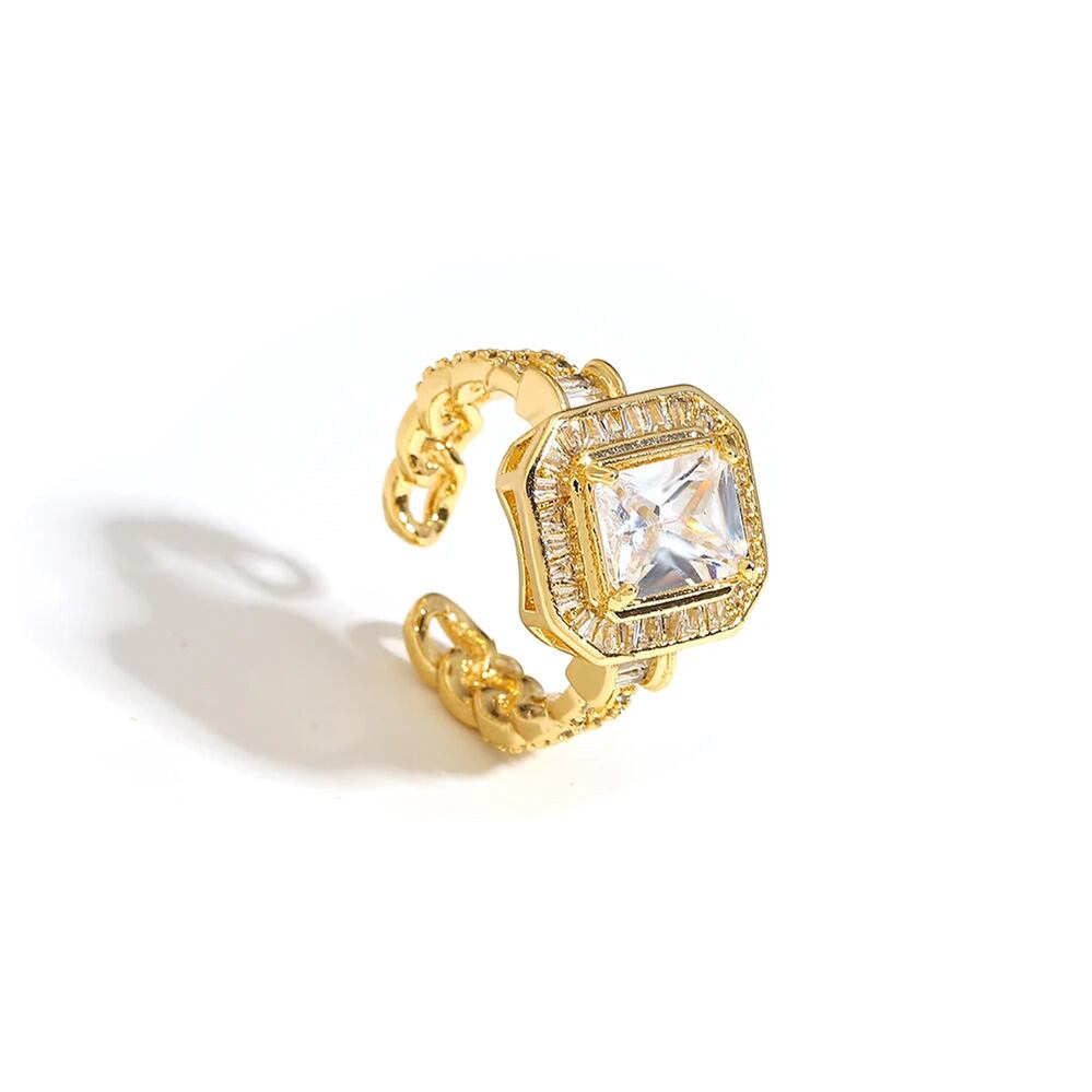 指輪 リング ジルコニア ゴールド スクエア LOVE レディース 絶妙 幾何学 四角 ジルコン インレイ 指