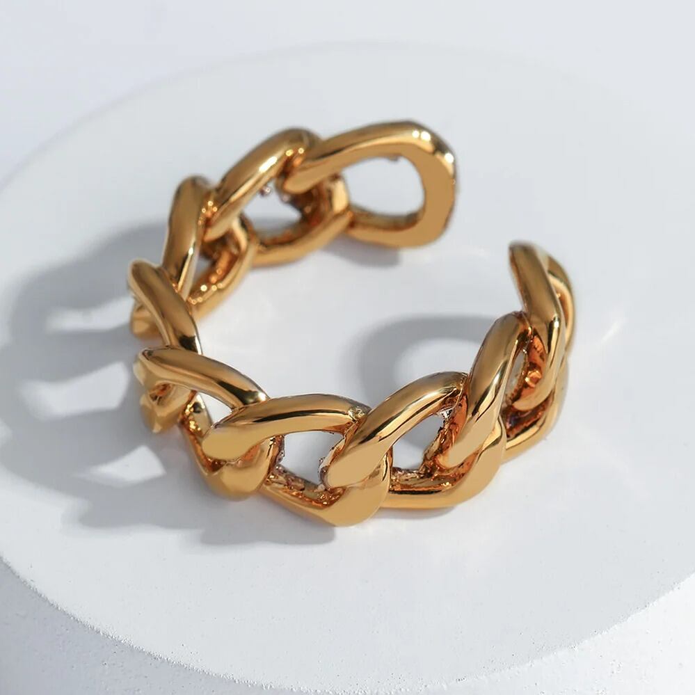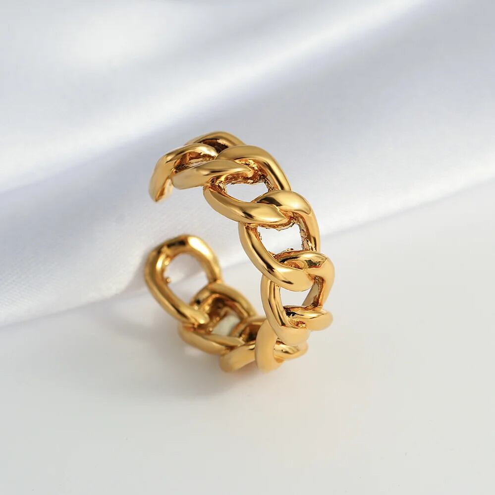 ファッション ツイスト リンク 分厚い リング 指輪 レディース パーソナリティ ゴールド カラー オープニング 指 フィンガー チャーム ジュエリー