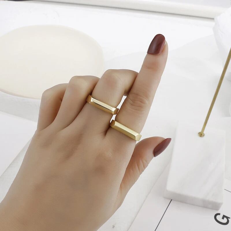 ファッション 幾何学 オープニング リング 指輪 レディース シンプル ゴールド カラー マット 光沢 スムーズ 指 フィンガー ジュエリー ギフト
