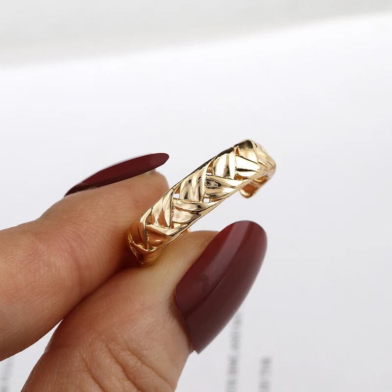 ファッション 織り テクスチャー オープニング リング 指輪 レディース シンプル ゴールド カラー マット 光沢 幾何学 指 フィンガー ジュエリー ギフト