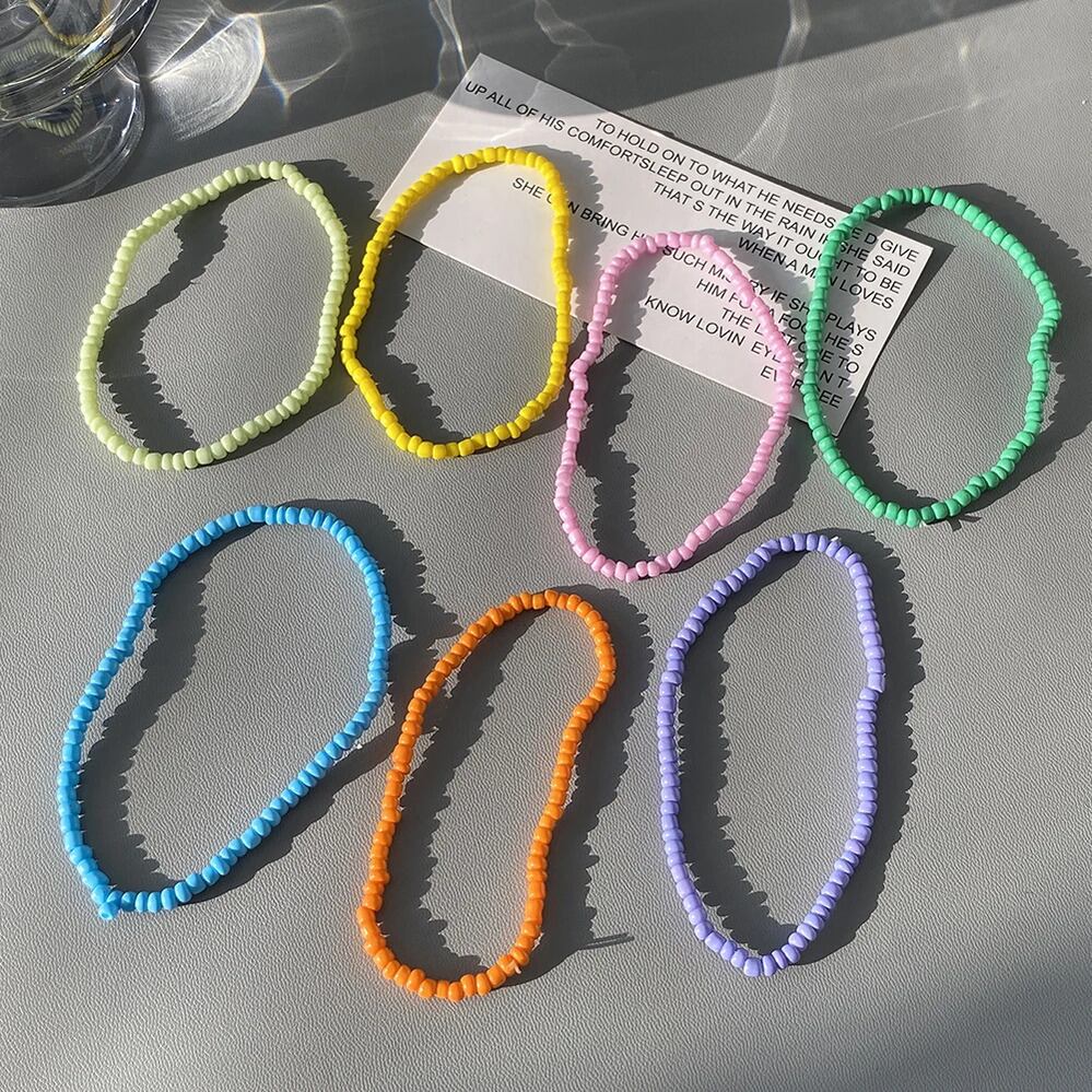 ブレスレット レインボー ビーズ レディース かわいい 虹 シード 種 ガール ボヘミアン ハンドメイド 友情 ビーチ