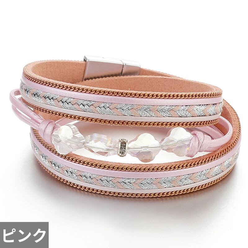 ブレスレット クリスタル ビンテージ レザー ビーズ ロング 矢印 レディース イレギュラー ボヘミアン