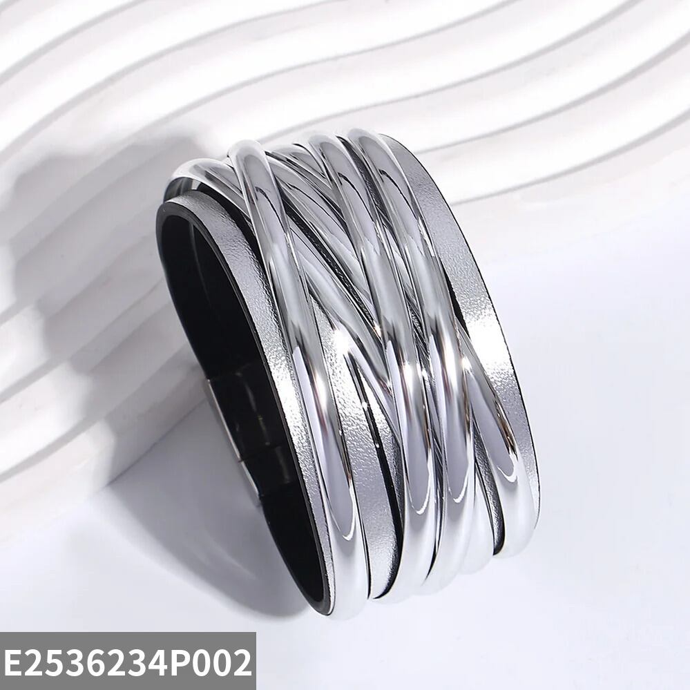 チャーム バングル ブレスレット クロス レザー レディース トレンド パンク 光沢 BOHO 多層 マルチレイヤー
