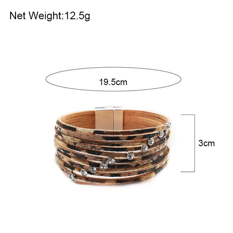 BOHO レザー ブレスレット レディース 多層 マルチレイヤー ヒョウ レオパード 豹 動物 アニマル ラップ クリスタル ラインストーン バングル ジュエリー ガール ギフト
