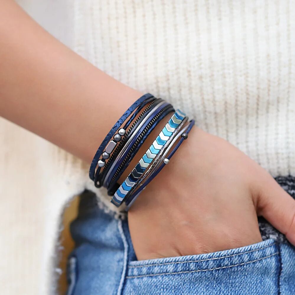 ブレスレット ビンテージ レザー ビーズ メタル 矢印 レディース 2 調子 多層 マルチレイヤー