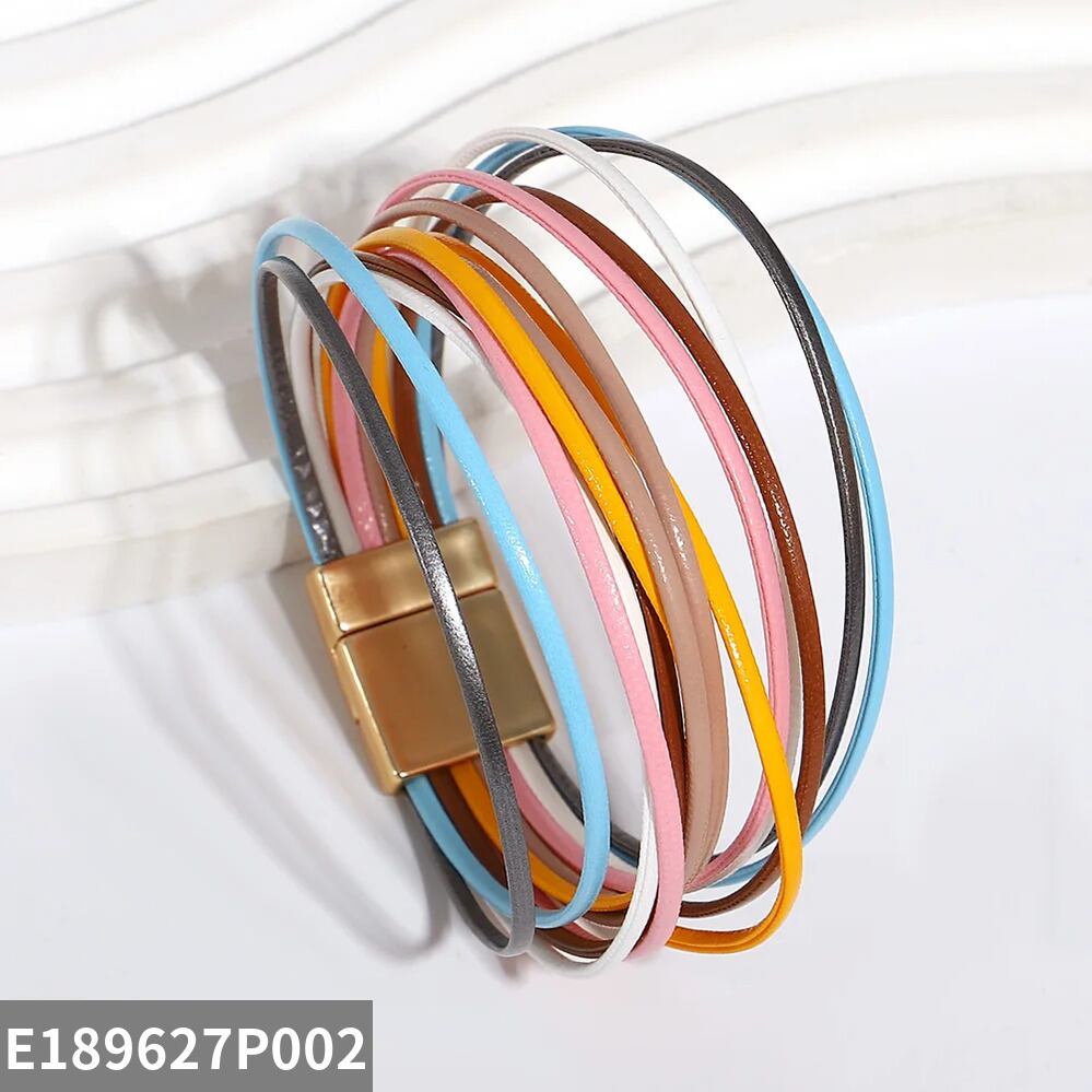 ファッション カラフル 虹 レインボー レザー ブレスレット レディース シンプル 多層 マルチレイヤー スリム ストリップ ラップ パーティ ジュエリー ギフト