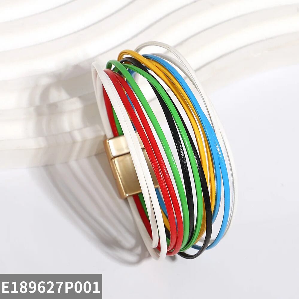 ブレスレット レインボー シンプル レザー レディース ファッション カラフル 虹 多層 マルチレイヤー スリム ストリップ