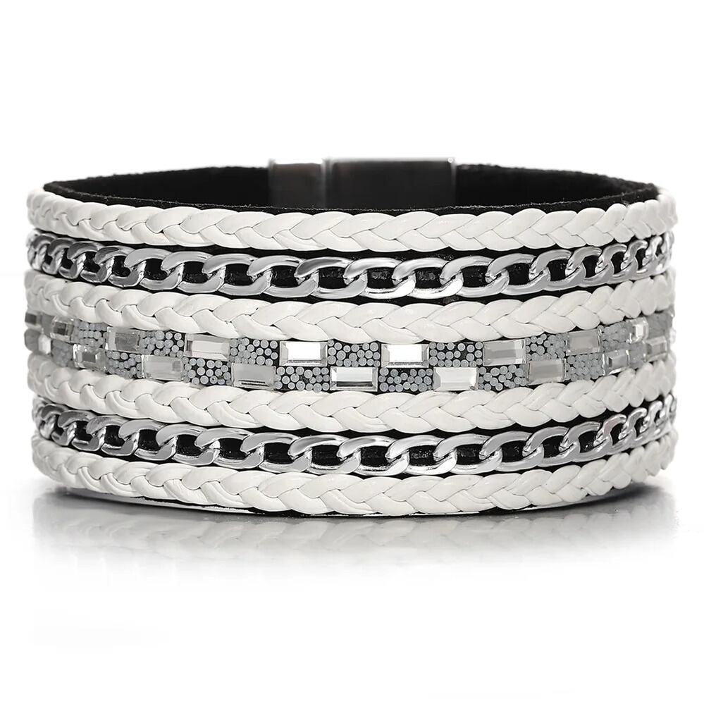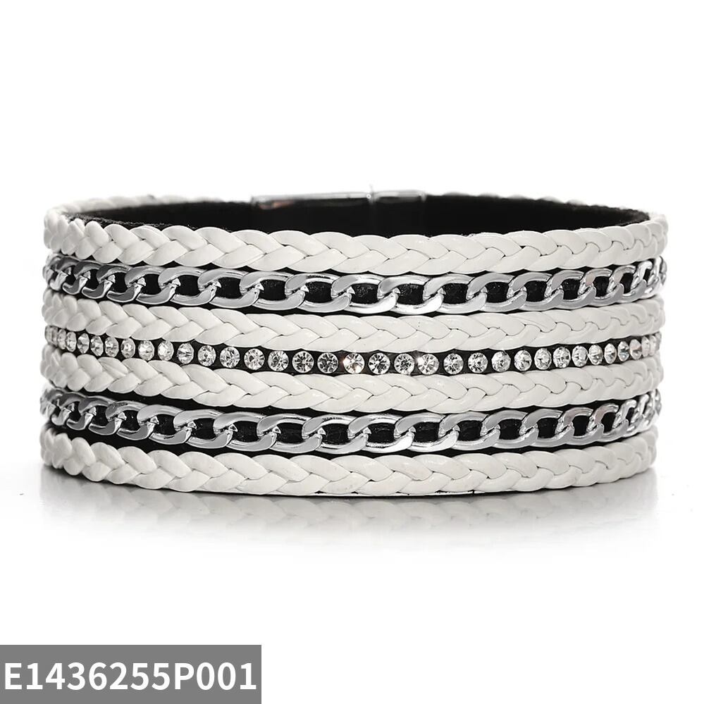 ブレスレット ラインストーン チェーン レザー メタル レディース メンズ BOHO ハンドメイド 編組 クラシック
