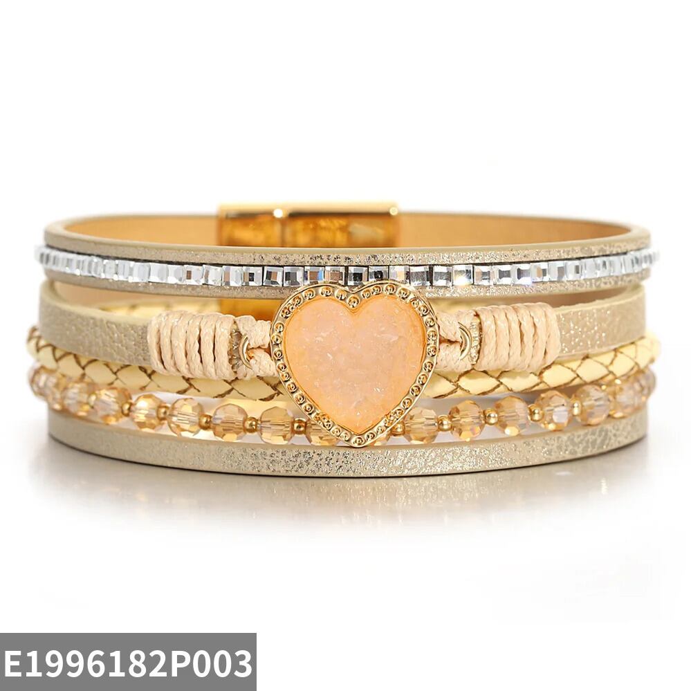 ロマンチック ハート ストーン ラップ ブレスレット レディース ビンテージ クリスタル ビーズ チェーン 多層 マルチレイヤー レザー ジュエリー ギフト