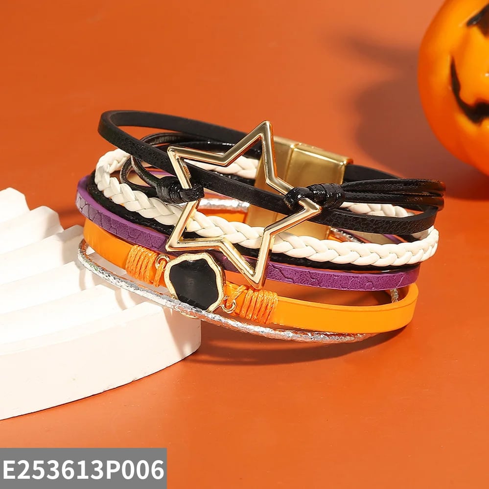 ゴシック かぼちゃ 植物 プラント 野菜 ハート スター 星 ストーン 幾何学 レザー ブレスレット BOHO ハロウィーン 多層 マルチレイヤー ラップ 幅 ジュエリー ギフト