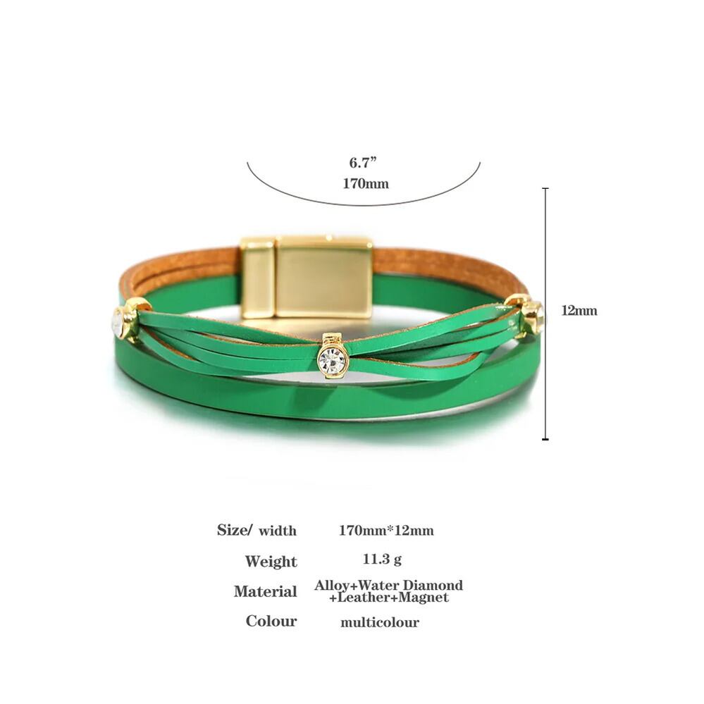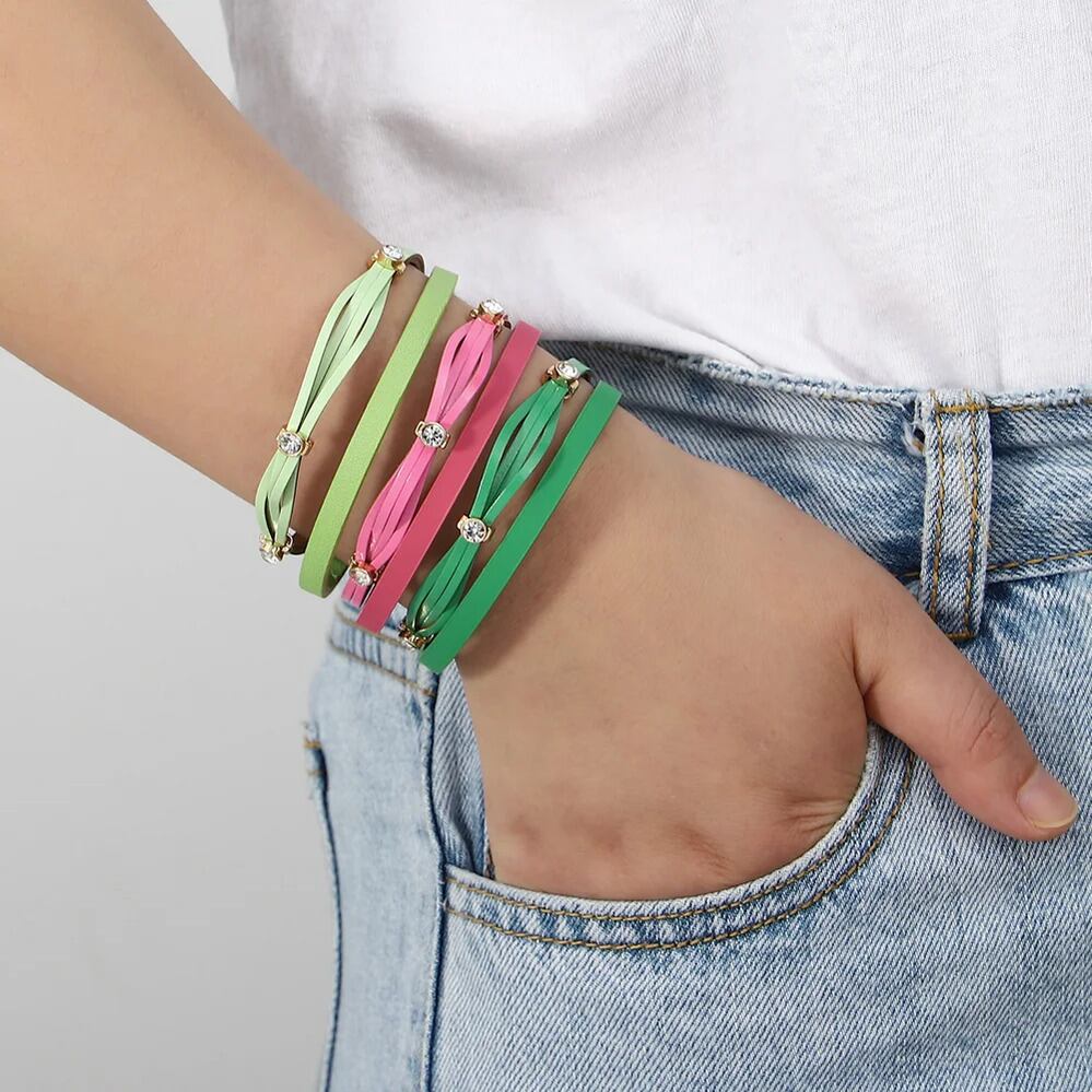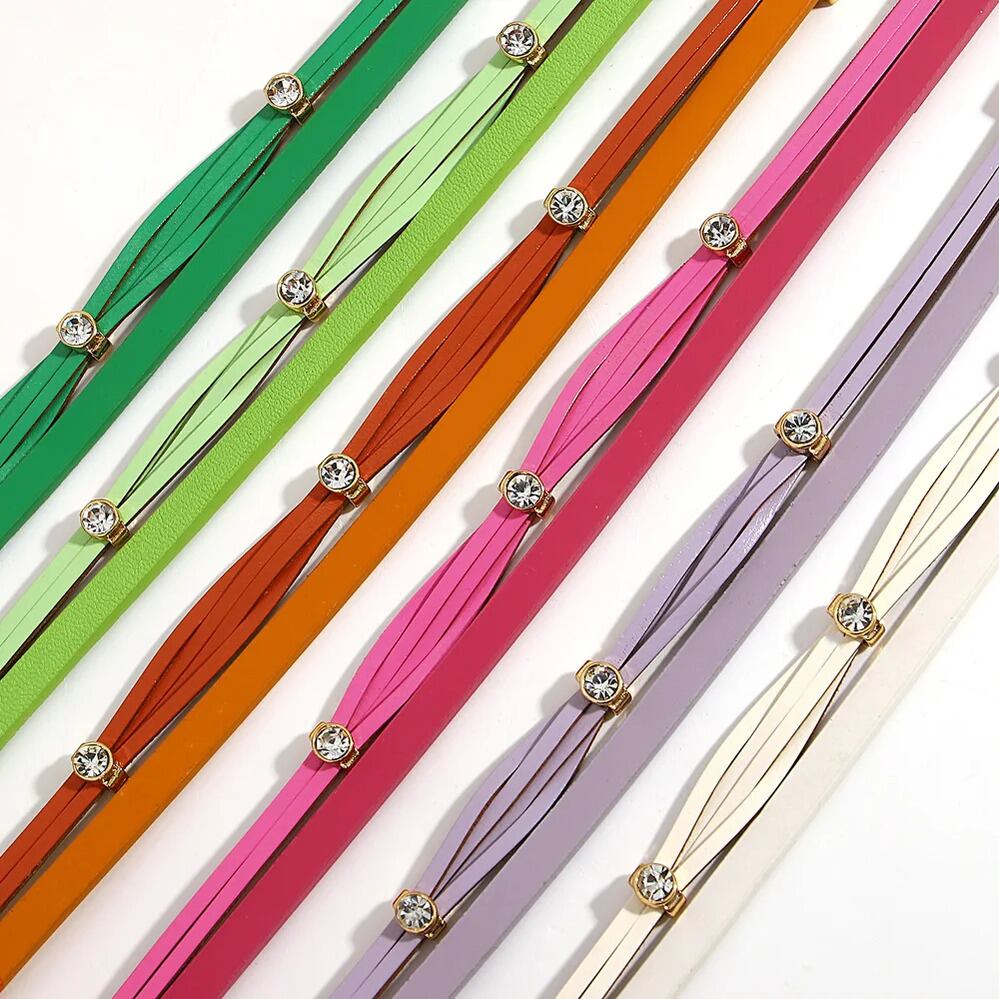 チャーム ブレスレット ラインストーン レザー レディース ファッション ハンドメイド 編組 スリム キャンディー カラー 象眼細工