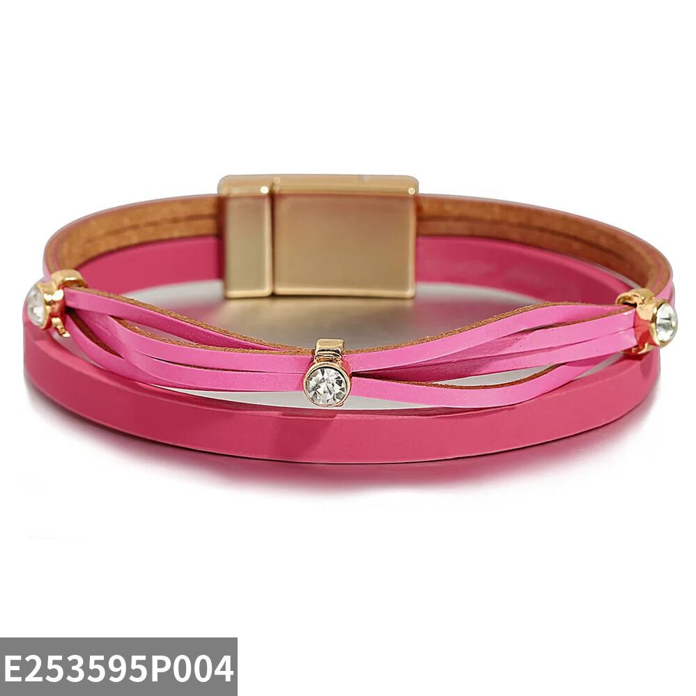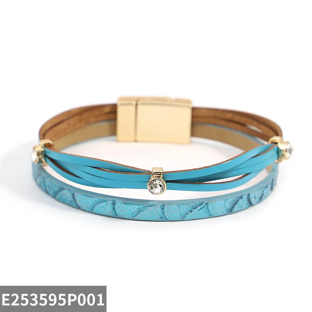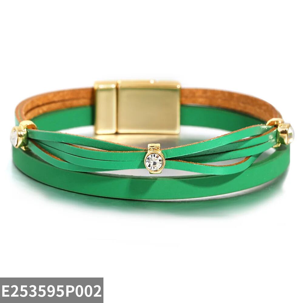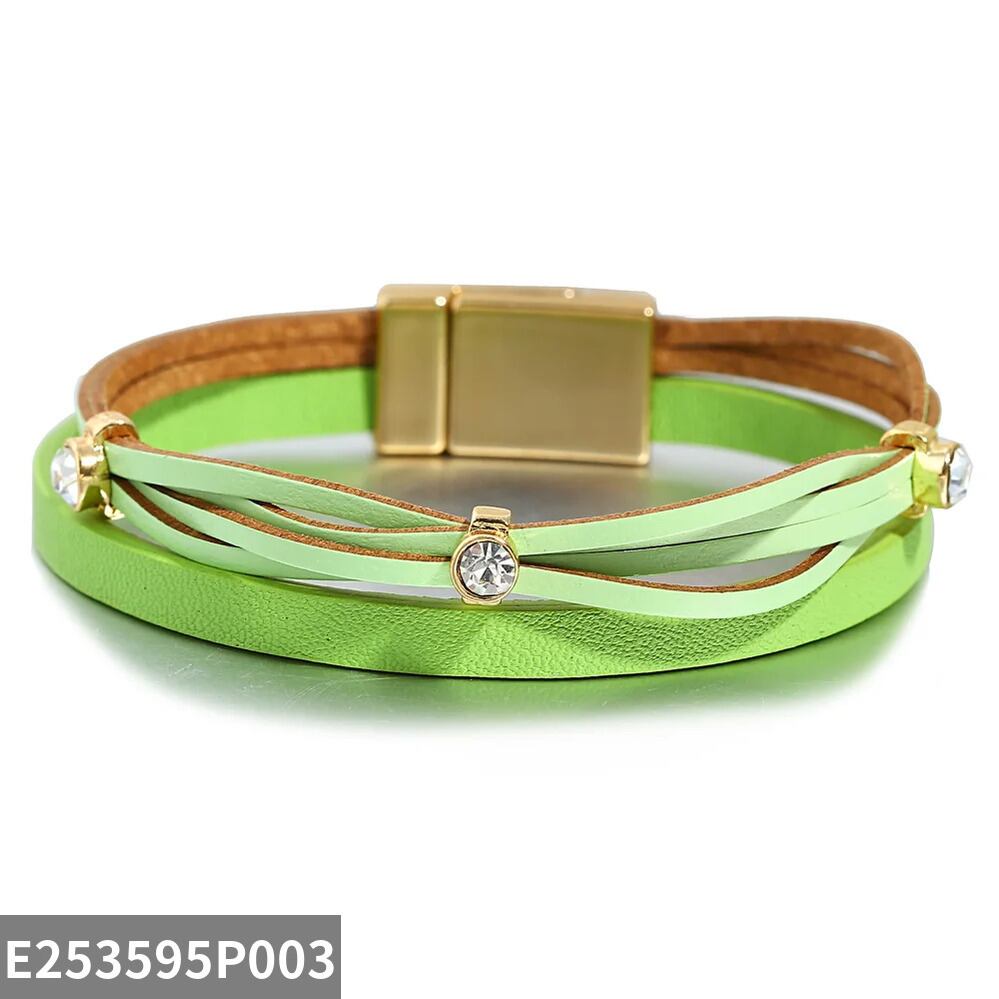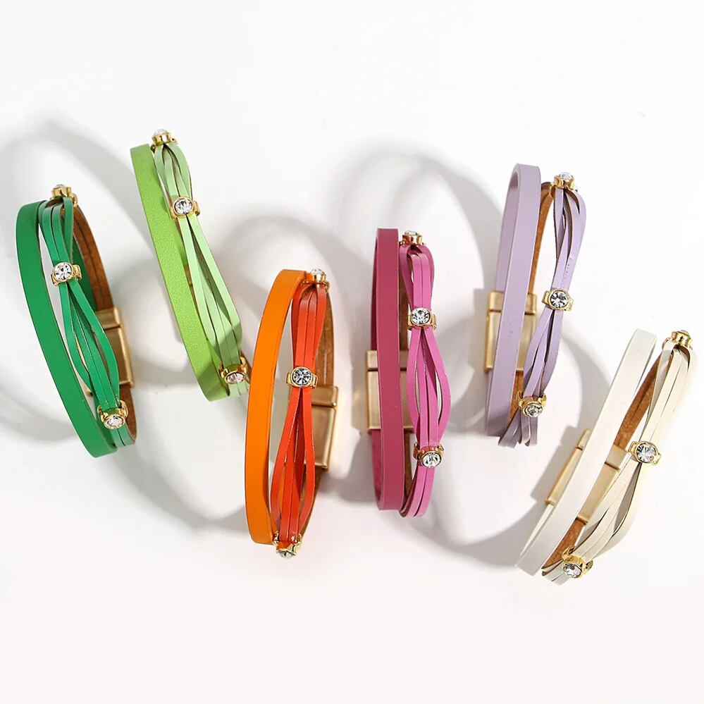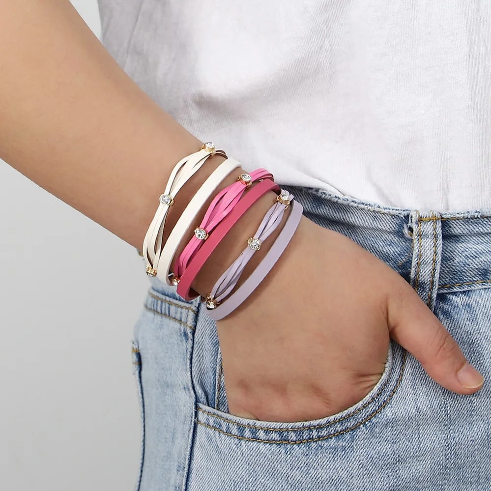 ファッション ハンドメイド 編組 スリム レザー ブレスレット レディース チャーム キャンディー カラー 象眼細工 ラインストーン パーティ ジュエリー