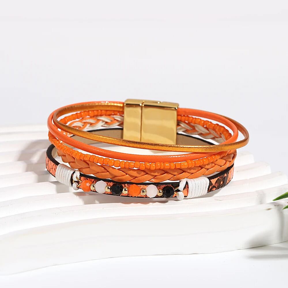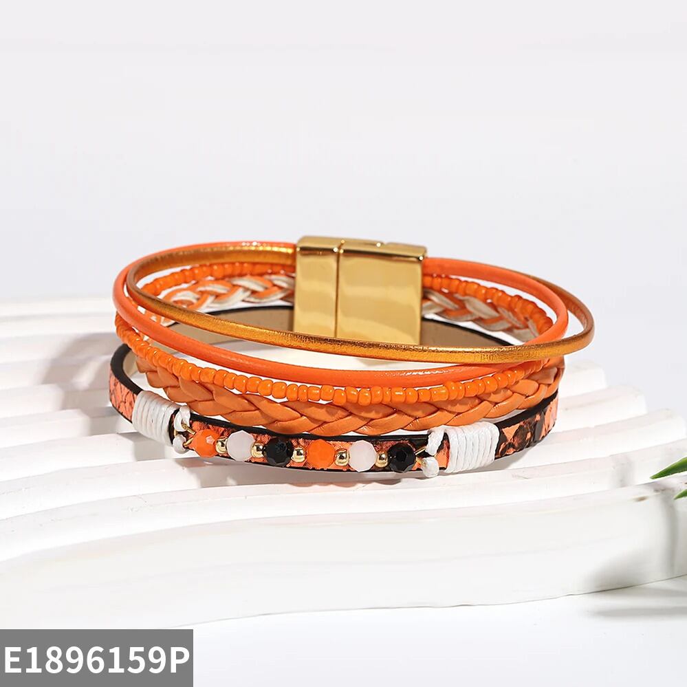 BOHO シード 種 ビーズ ハンドメイド 編組 レザー ブレスレット レディース ハロウィーン オレンジ 果物 フルーツ かぼちゃ 植物 プラント 野菜 ゴースト ラップ チャーム ジュエリー