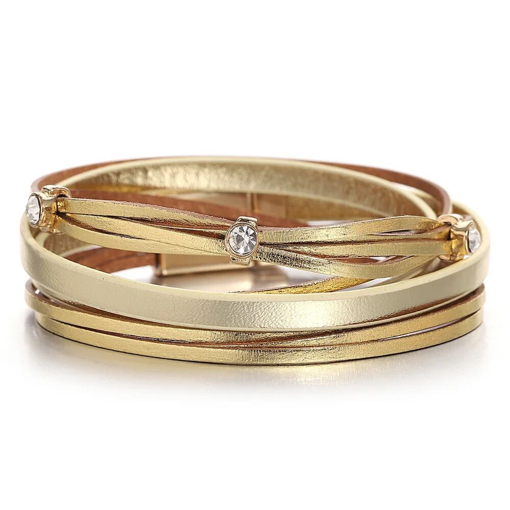 トレンド 象眼細工 ラインストーン レザー ブレスレット レディース BOHO 多層 マルチレイヤー ロング スリム ストリップ ラップ チャーム ジュエリー ギフト
