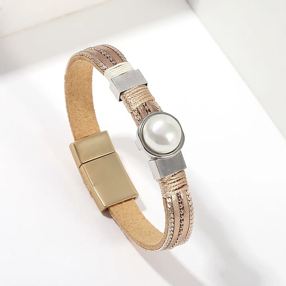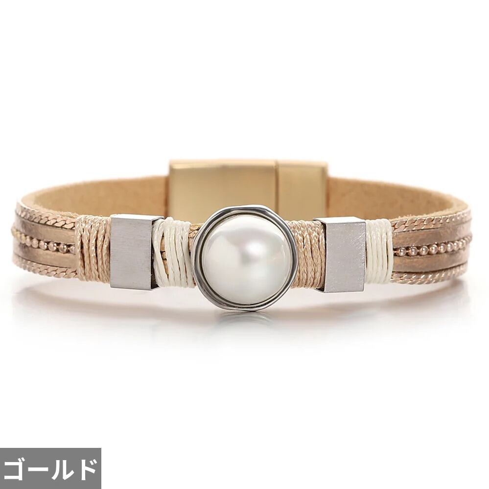 ビンテージ パール 編組 レザー ブレスレット レディース メンズ BOHO メタル ビーズ チェーン ラップ バングル チャーム エスニック ジュエリー