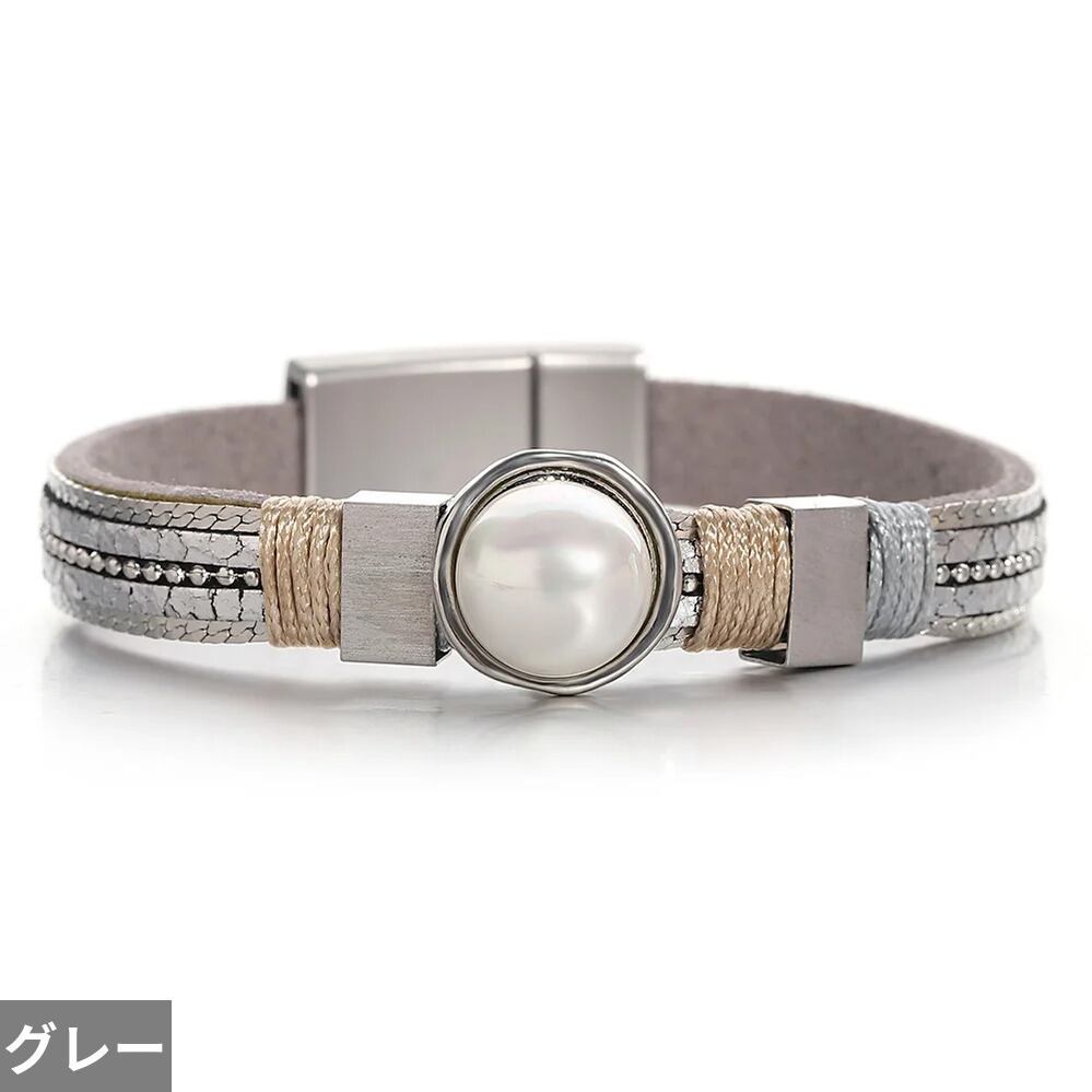 ファッションブレスレット: 象嵌パール編組レザーブレスレット レディース メンズ