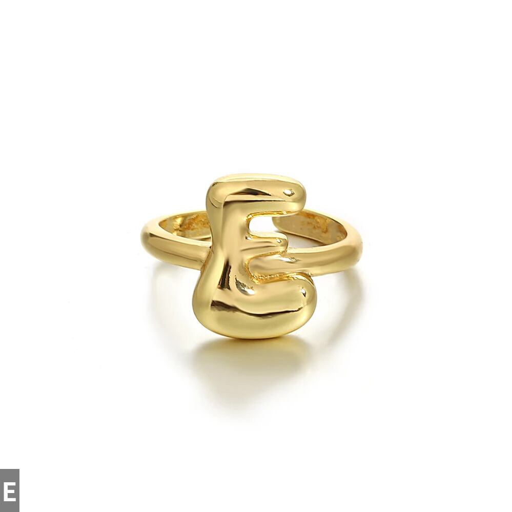 分厚い ゴールド プレート コッパー カッパー オープン リング 指輪 レディース メンズ ぽっちゃり アルファベット バルーン バブル 泡 イニシャル レター 指 フィンガー ジュエリー ギフト