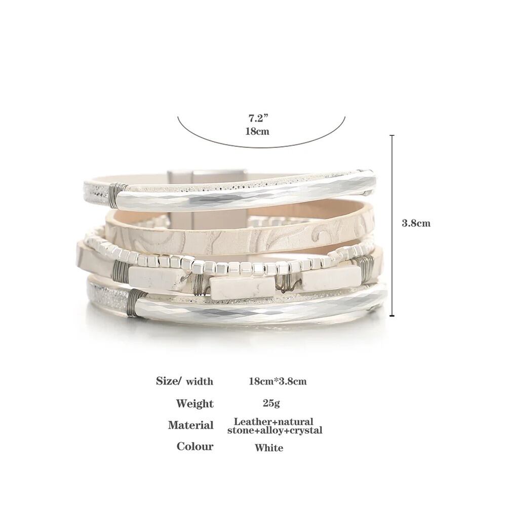 ビンテージ ナチュラル ストーン 編組 レザー ブレスレット レディース BOHO チャーム メタル チューブ 多層 マルチレイヤー ラップ ジュエリー ギフト