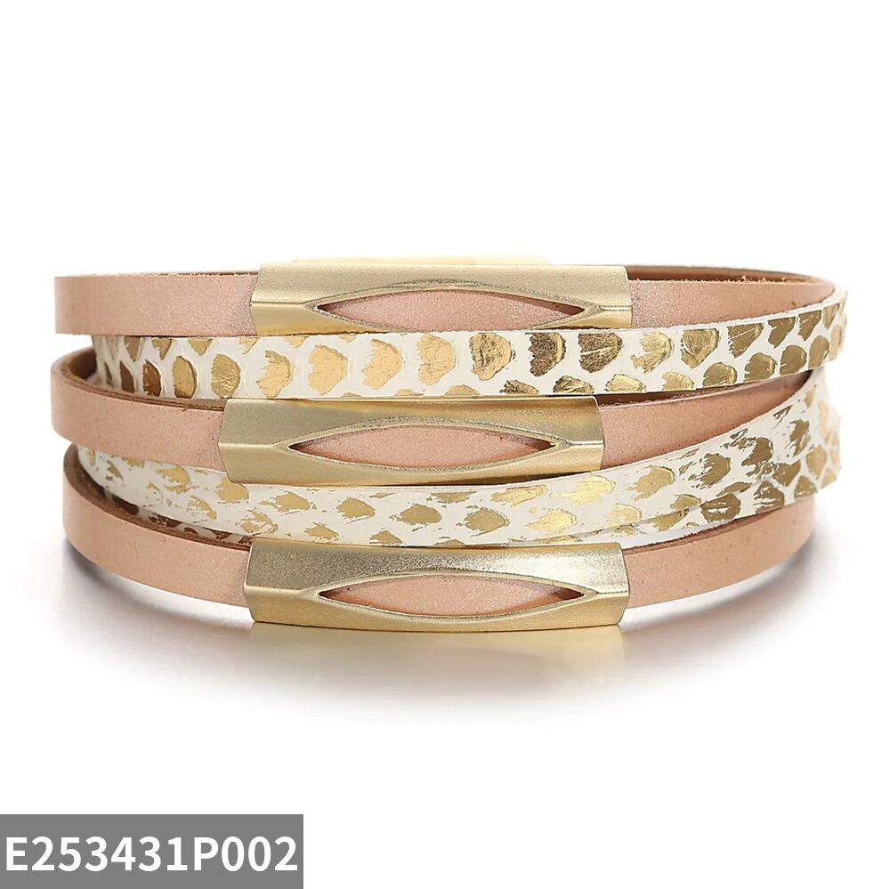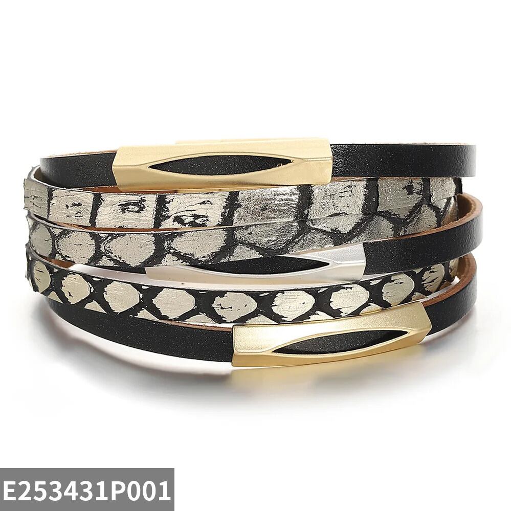 ビンテージ 多層 マルチレイヤー メタル バー ラップ ブレスレット 磁気 マグネット マグネティック 留め金 クラスプ 蛇 スネイク ヘビ 動物 アニマル スキン 肌 レザー レディース BOHO チャーム ジュエリー