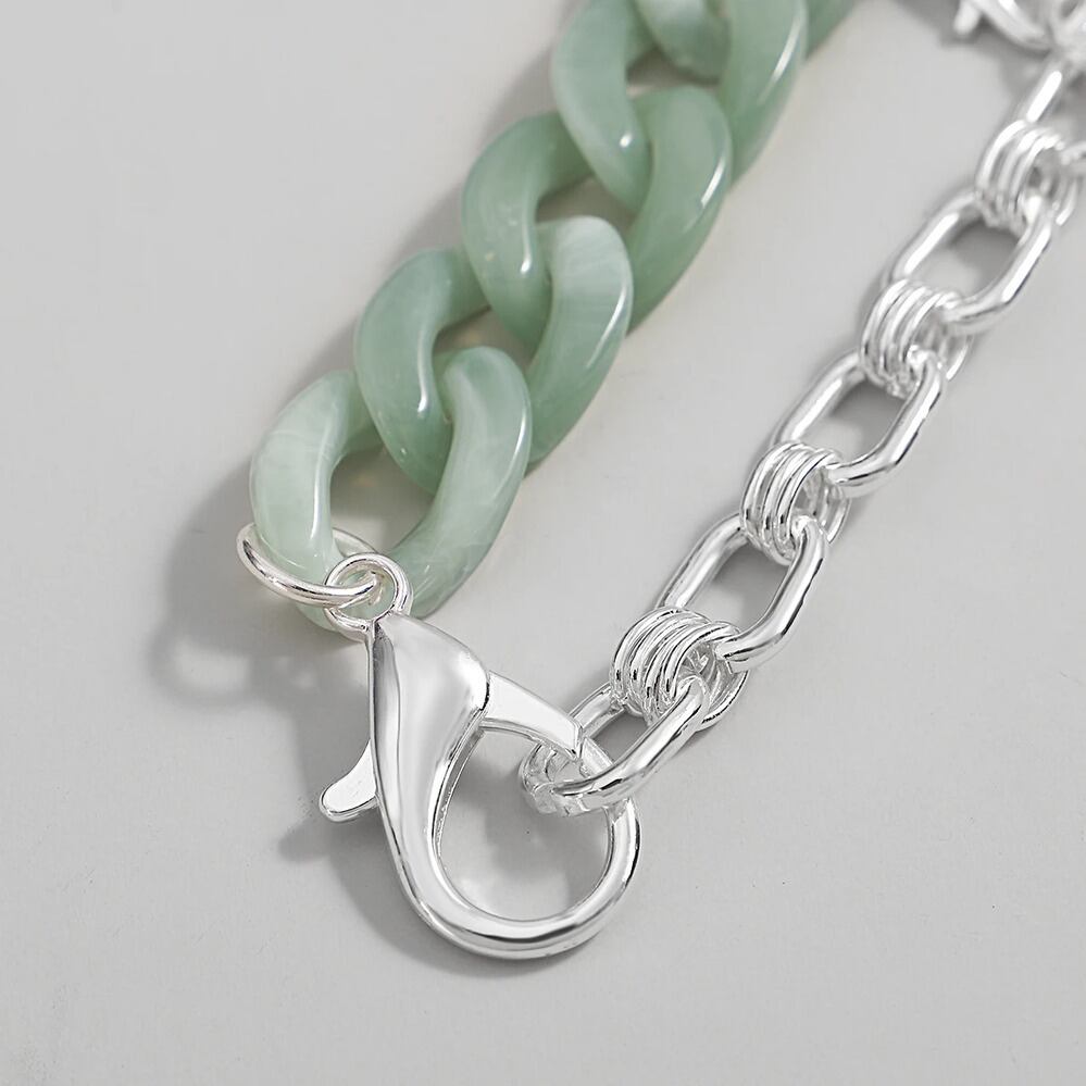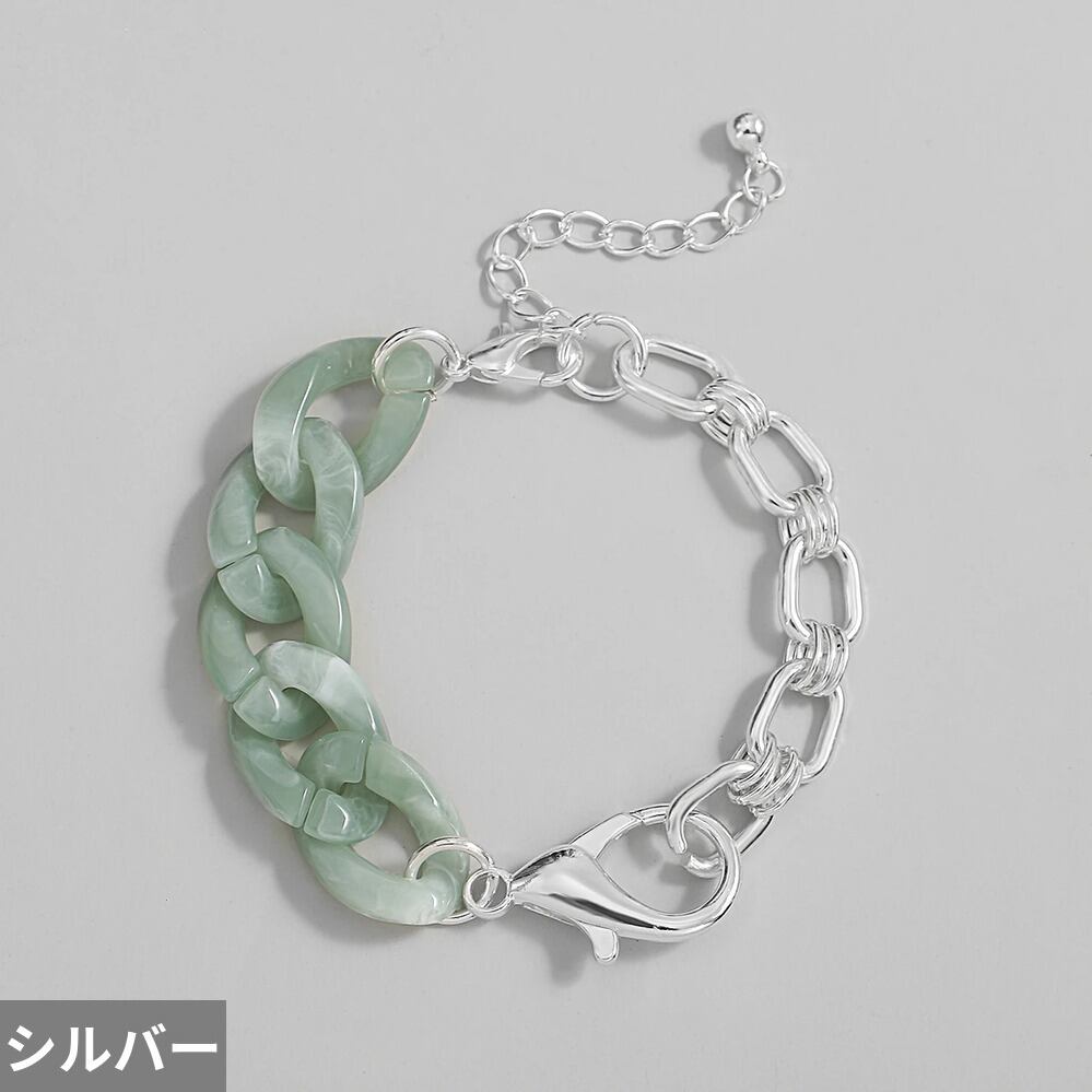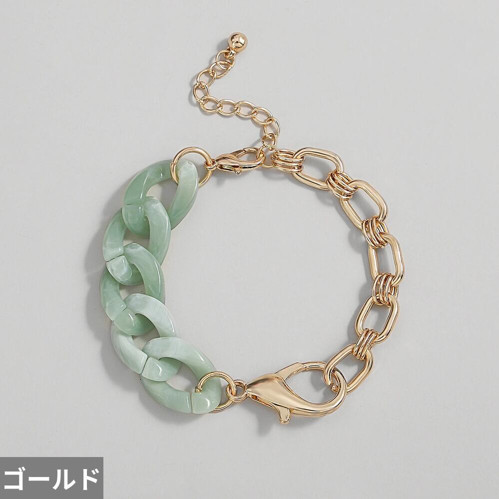 チャーム パッチワーク アクリル メタル ブレスレット レディース メンズ ファッション 緑 グリーン ストーン リンク チェーン  バングル ジュエリー ギフト