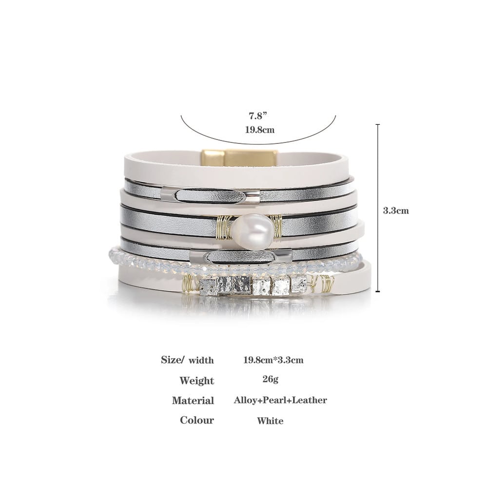 四角 スクエア ストーン ビーズ パール レザー ブレスレット チャーム メタル チューブ クリスタル チェーン 多層 マルチレイヤー 幅 ラップ ファッション ジュエリー