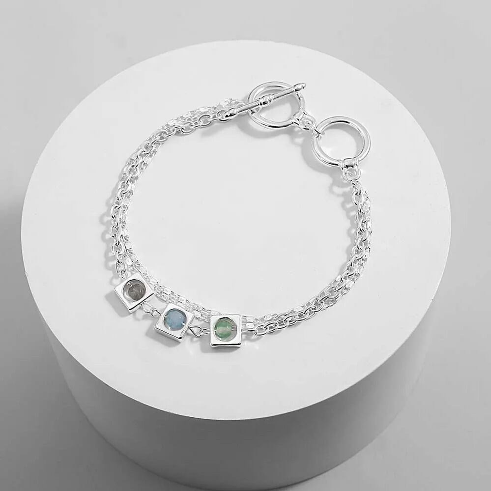 ファッション 透かし スモール スクエア クリスタル ビーズ ブレスレット パンク 多層 マルチレイヤー スリム シルバー カラー チェーン レディース ジュエリー