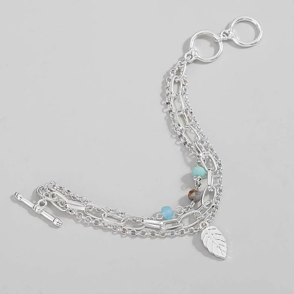 ビンテージ 木の葉 リーフ ペンダント ブレスレット レディース チャーム カラフル ストーン ビーズ 多層 マルチレイヤー シルバー カラー チェーン ジュエリー ギフト