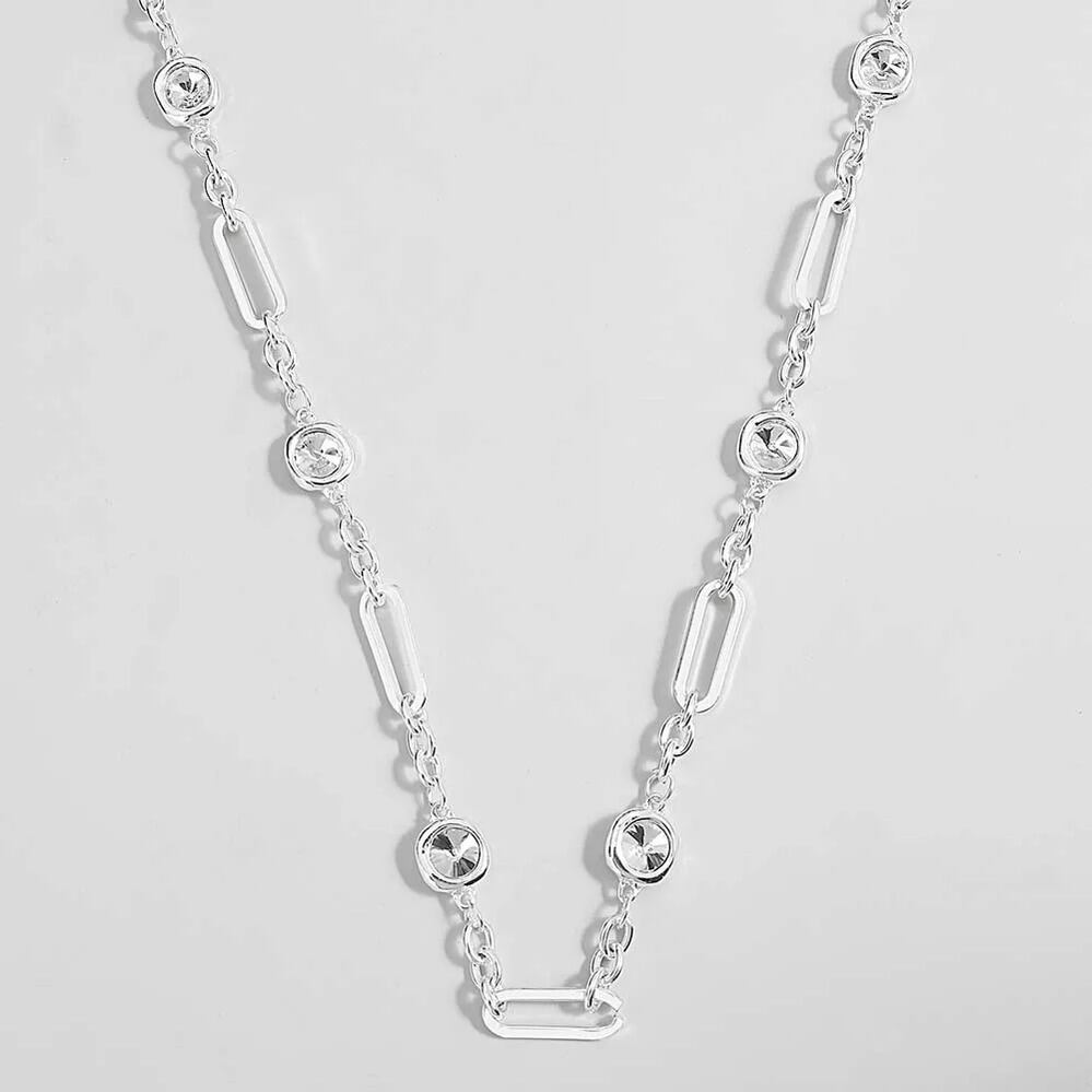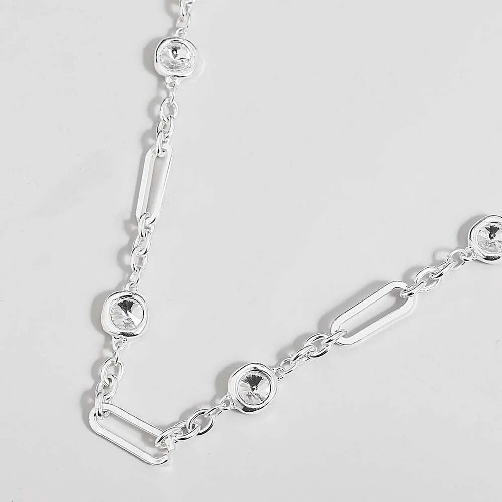 シンプル 幾何学 サークル ネックレス ファッション パンク クリスタル ビーズ シルバー カラー ロング チェーン ペンダント レディース ジュエリー