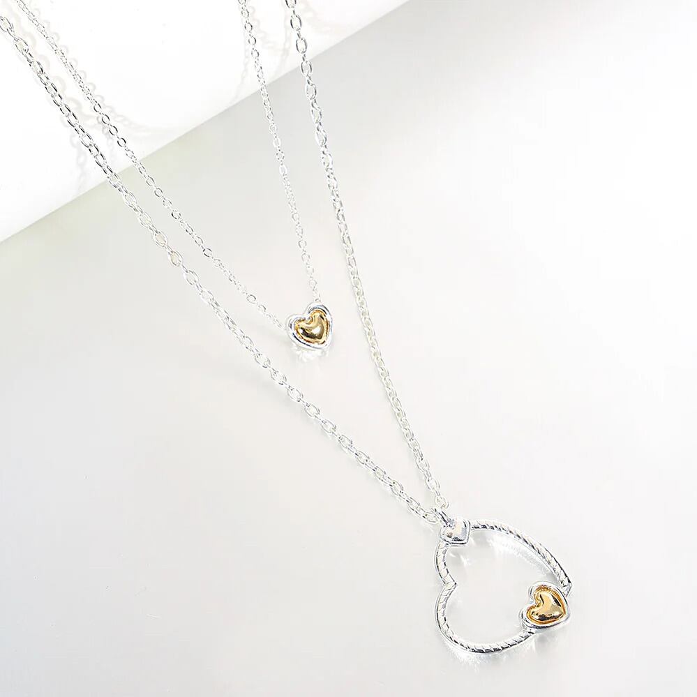 ファッション 多層 マルチレイヤー ハート チェーン ネックレス レディース ロマンチック ゴールド シルバー カラー Love ペンダント バレンタイン 日 ギフト