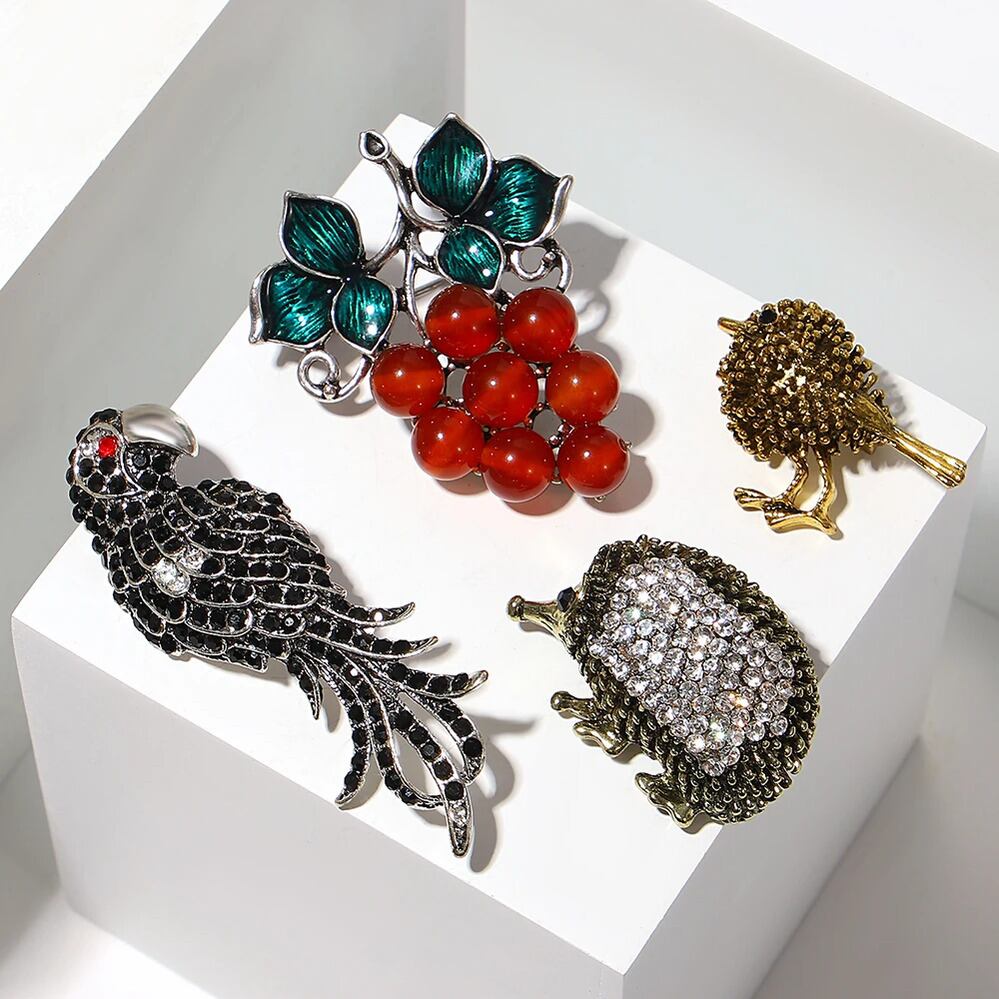ブローチ 動物 アニマル ハート ブドウ グレー 鳥 レディース アニメーション エナメル 面白い クリスマス ギフト