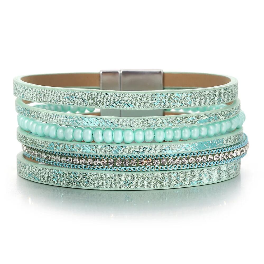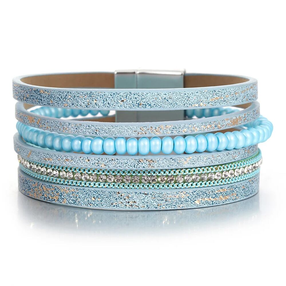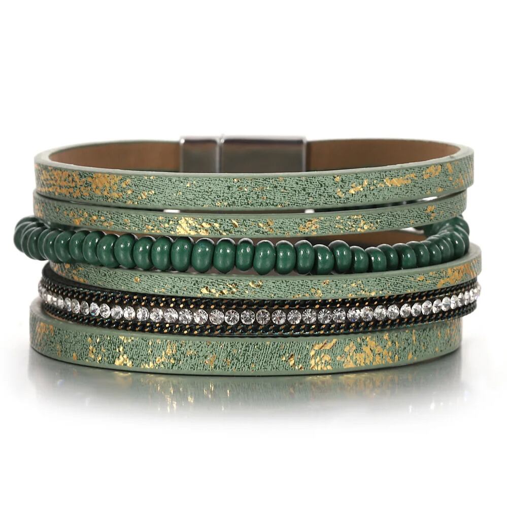 ブレスレット ラインストーン ビンテージ レザー ビーズ レディース ストーン スパンコール 象眼細工 多層 マルチレイヤー