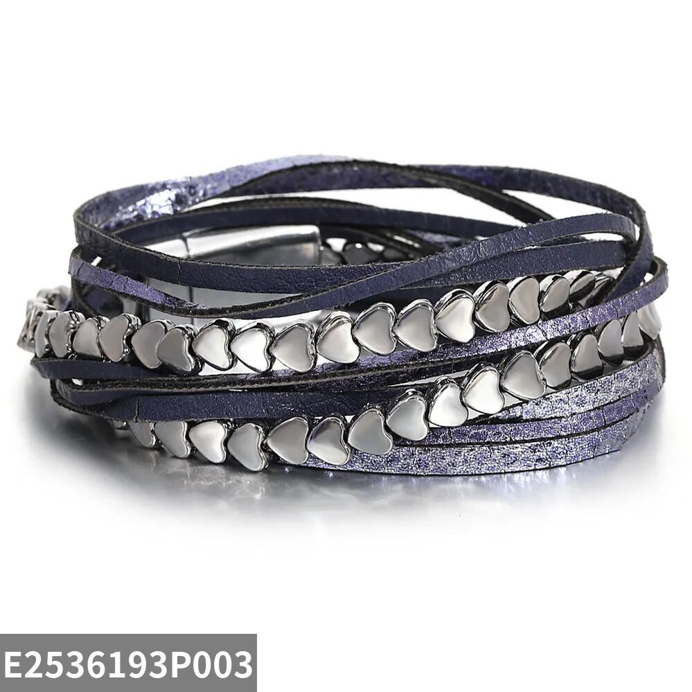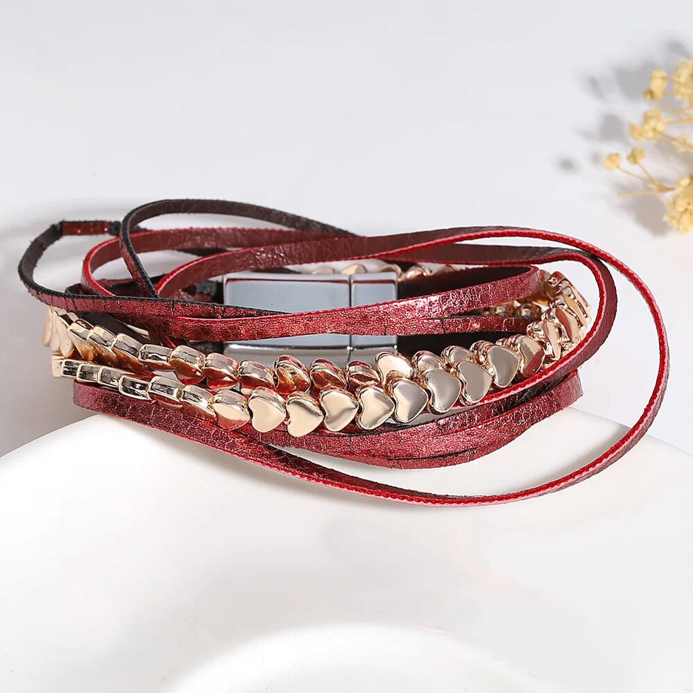 チャーム ブレスレット チェーン ハート レザー メタル LOVE レディース トレンド 多層 マルチレイヤー ジュエリー ロマンチック