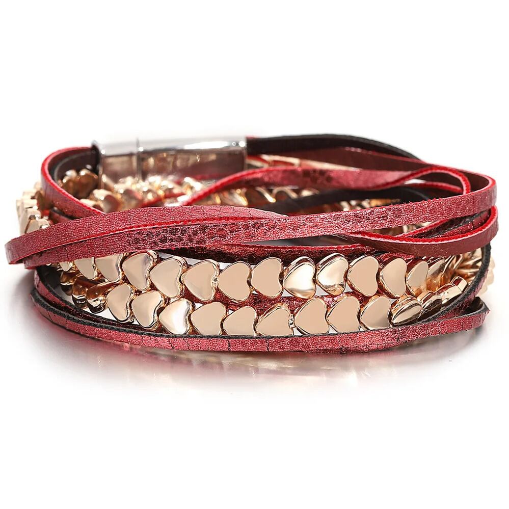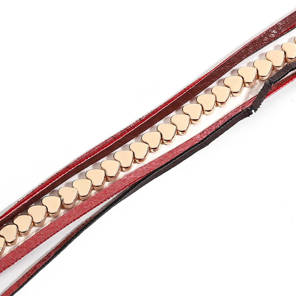 トレンド 多層 マルチレイヤー レザー ブレスレット レディース チャーム ジュエリー ロマンチック メタル Love ハート チェーン バレンタイン 日 ギフト