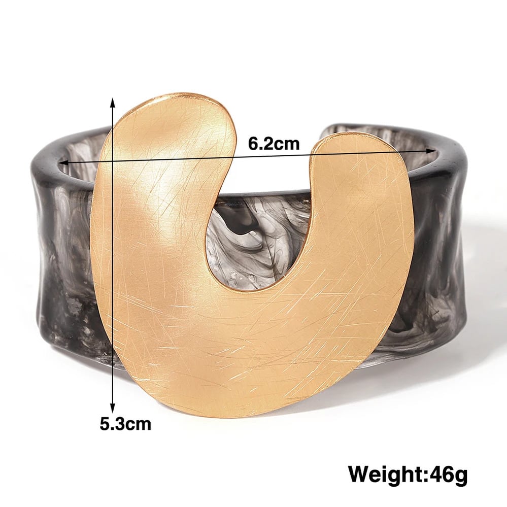 イレギュラー U字型 マット メタル アクリル オープン バングル レディース パーソナリティ シンプル 幅 ブレスレット パーティ ジュエリー ギフト