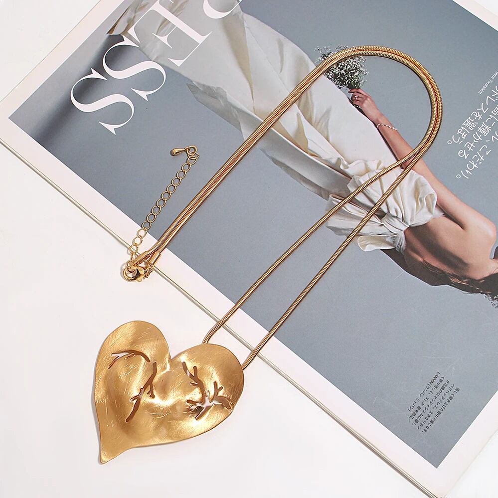 ユニーク 小枝 木の葉 リーフ 植物 プラント 透かし ハート ペンダント ネックレス レディース ビンテージ セーター チェーン パーティ ジュエリー バレンタイン 日 ギフト