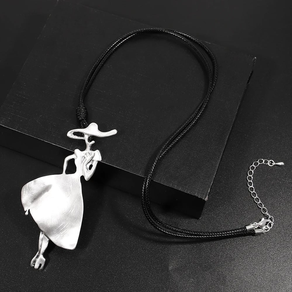 ビンテージ BOHO ロング レザー ネックレス エレガント マット メタル レディース ペンダント セーター チェーン 秋 冬 ウィンター ジュエリー