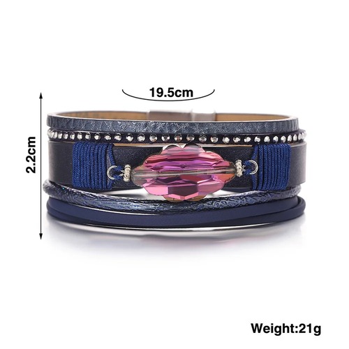 クリスタル ビーズ 編組 レザー ブレスレット レディース メンズ BOHO リベット ラインストーン チェーン 多層 マルチレイヤー ラップ ジュエリー ギフト