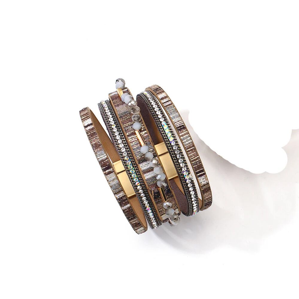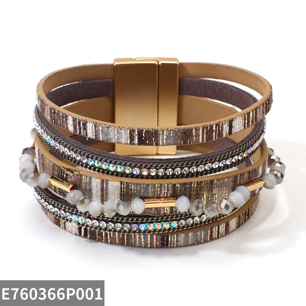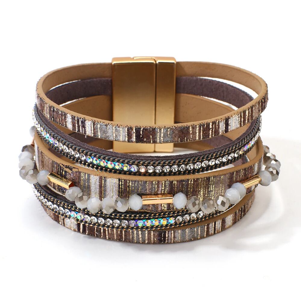 ブレスレット クリスタル ビンテージ レザー ビーズ レディース メンズ ボヘミアン 多層 マルチレイヤー