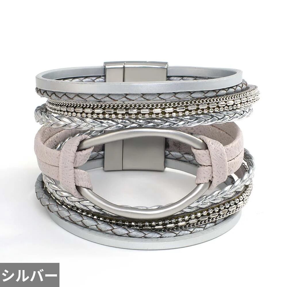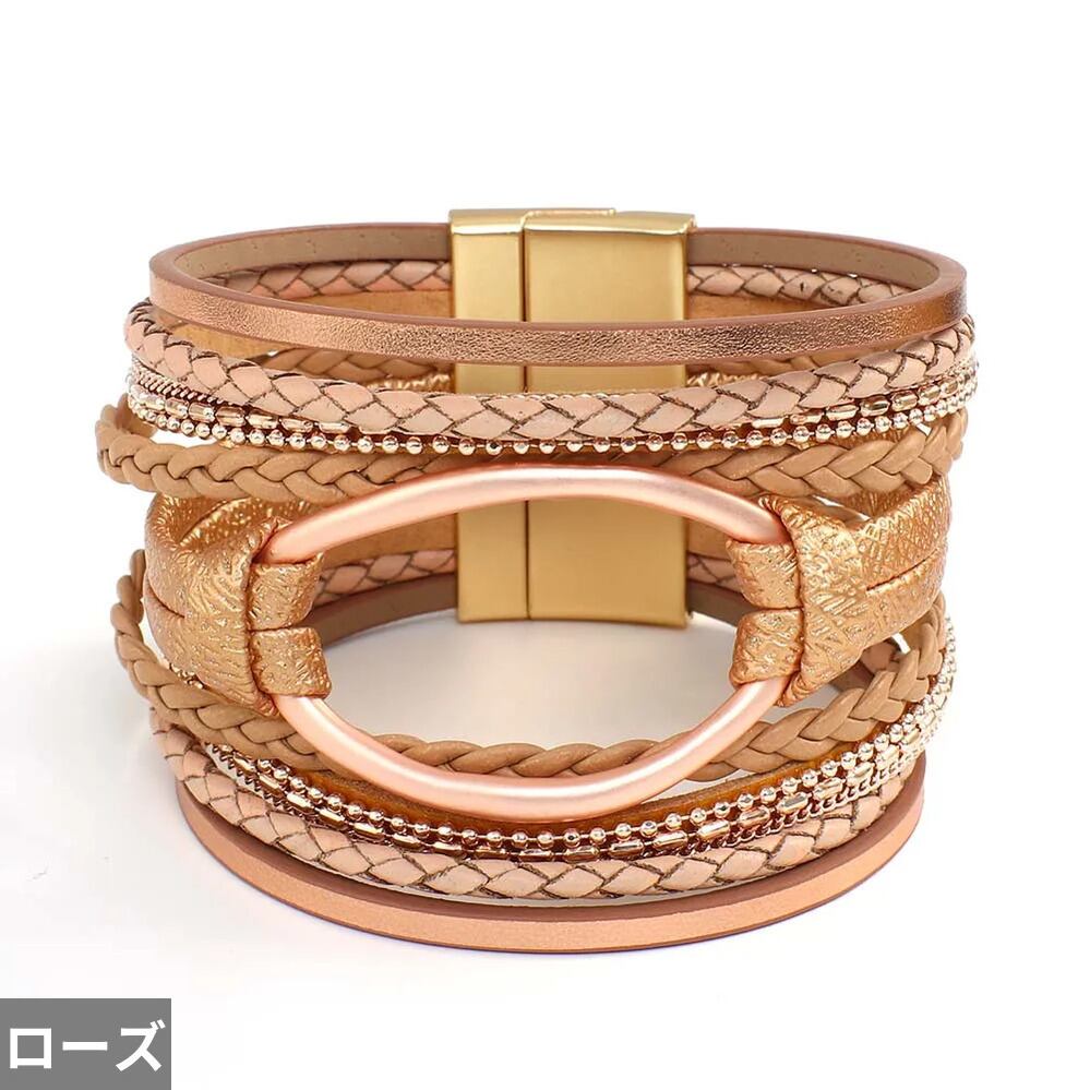 チャーム ブレスレット サークル レザー レディース BOHO 幾何学 大 編組 ファッション 分厚い 多層 マルチレイヤー
