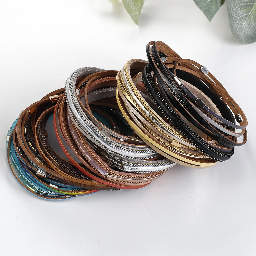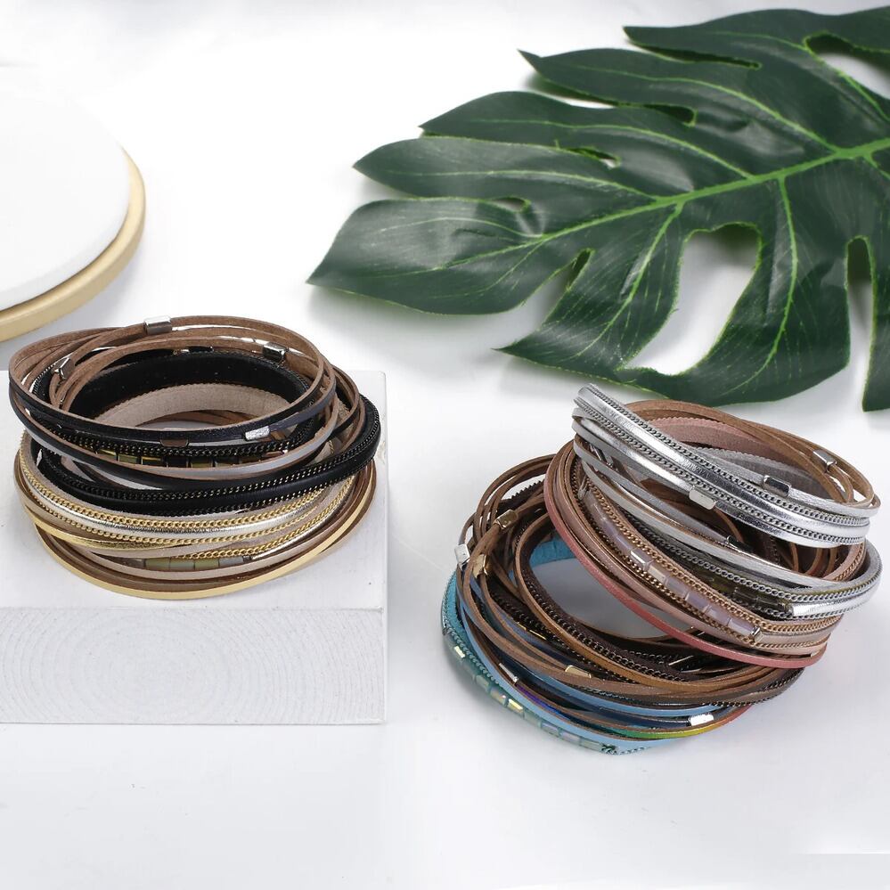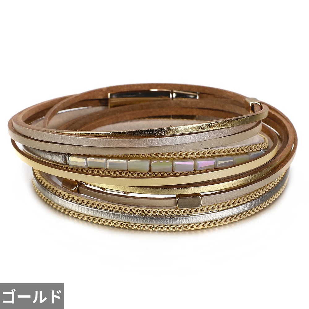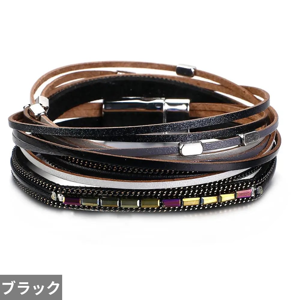 アクセ:ファッション多層PUレザーラップバングル
