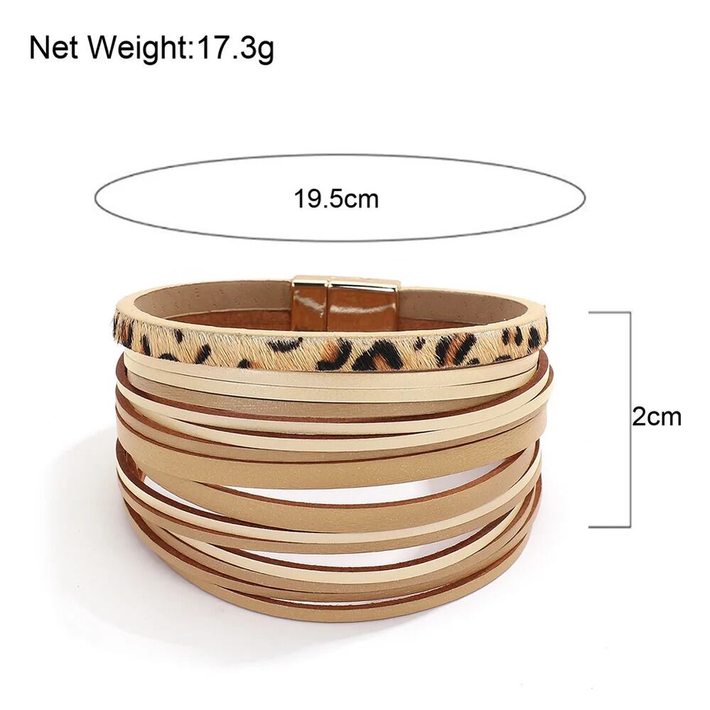 ビンテージ シンプル ヒョウ レオパード 豹 動物 アニマル レザー ブレスレット レディース BOHO 多層 マルチレイヤー スリム ストリップ 幅 ラップ バングル ジュエリー ギフト