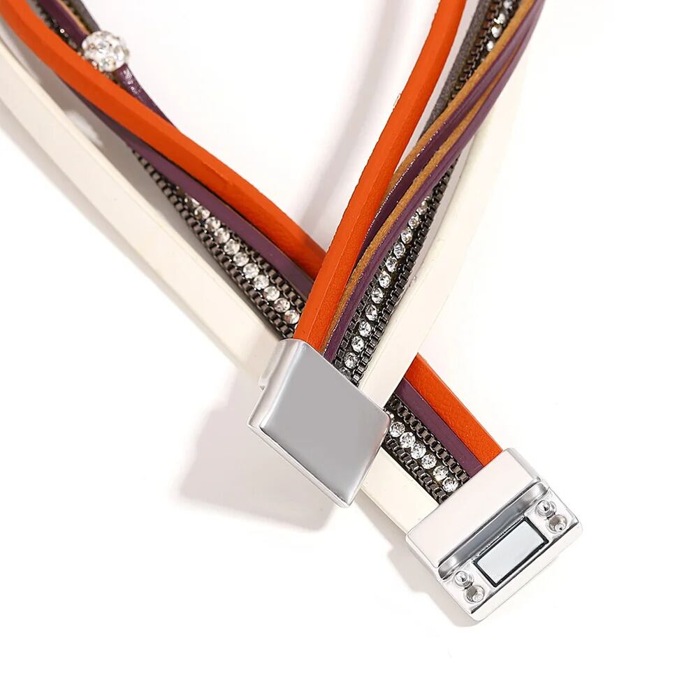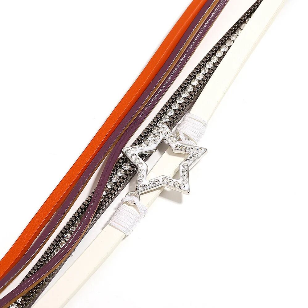 ファッション ラインストーン スター 星 レザー ブレスレット レディース かわいい パンク ロング 多層 マルチレイヤー ラップ ジュエリー クリスマス ギフト