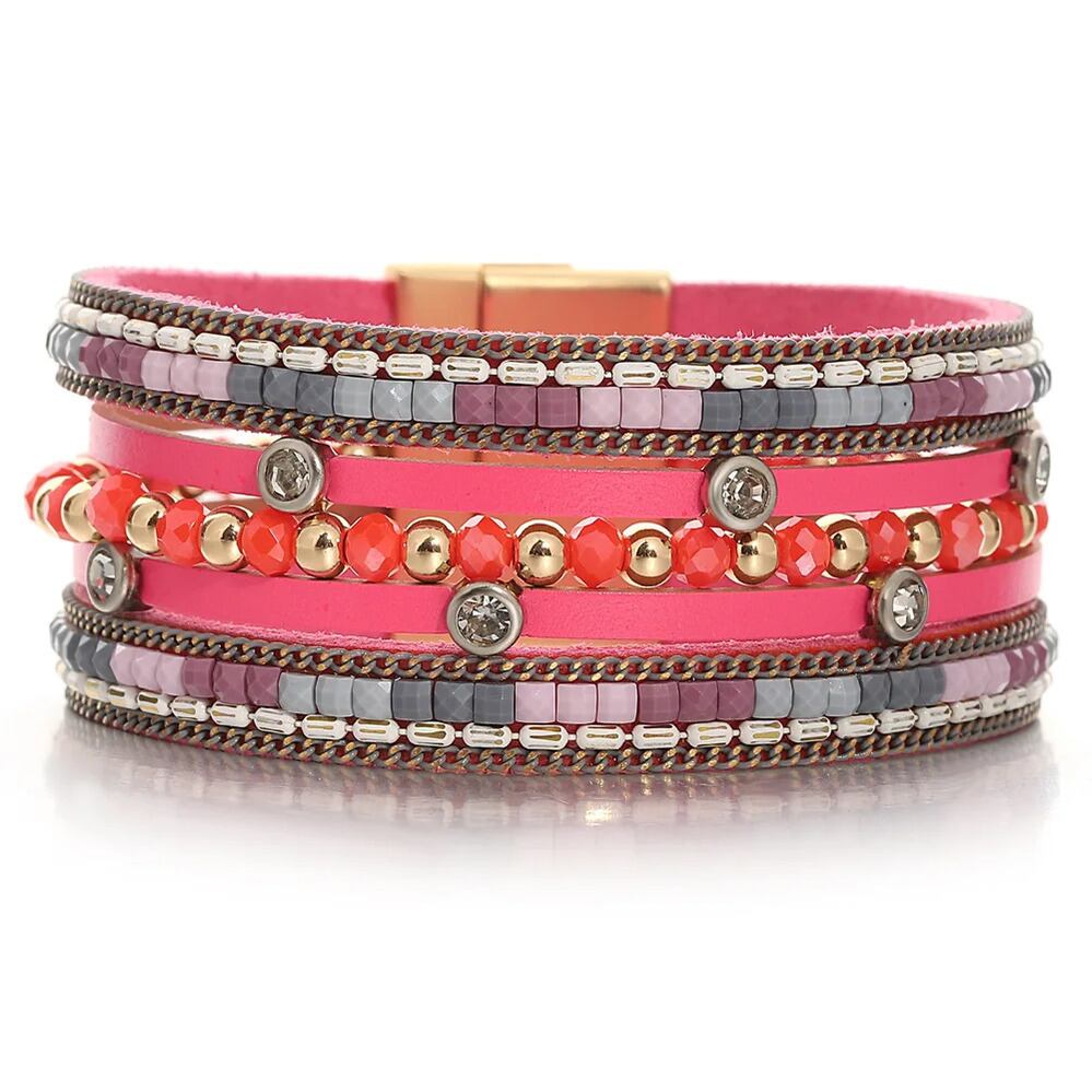 ファッションブレスレット:レディースミックスカラースクエアビーズレザーブレスレット