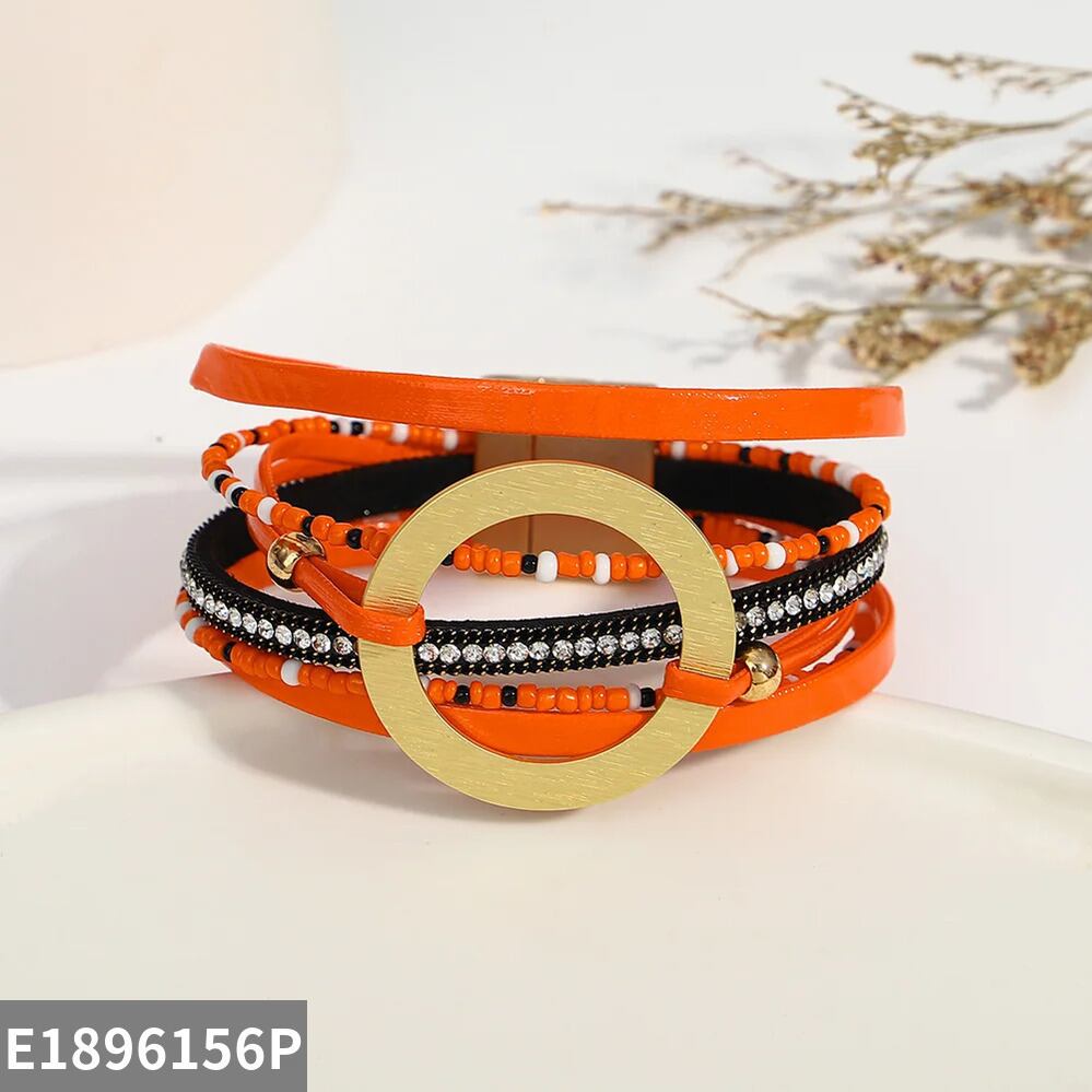 BOHO ゴールド カラー サークル レザー ブレスレット レディース シード 種 ビーズ クリスタル チェーン 多層 マルチレイヤー ラップ ハロウィーン ジュエリー